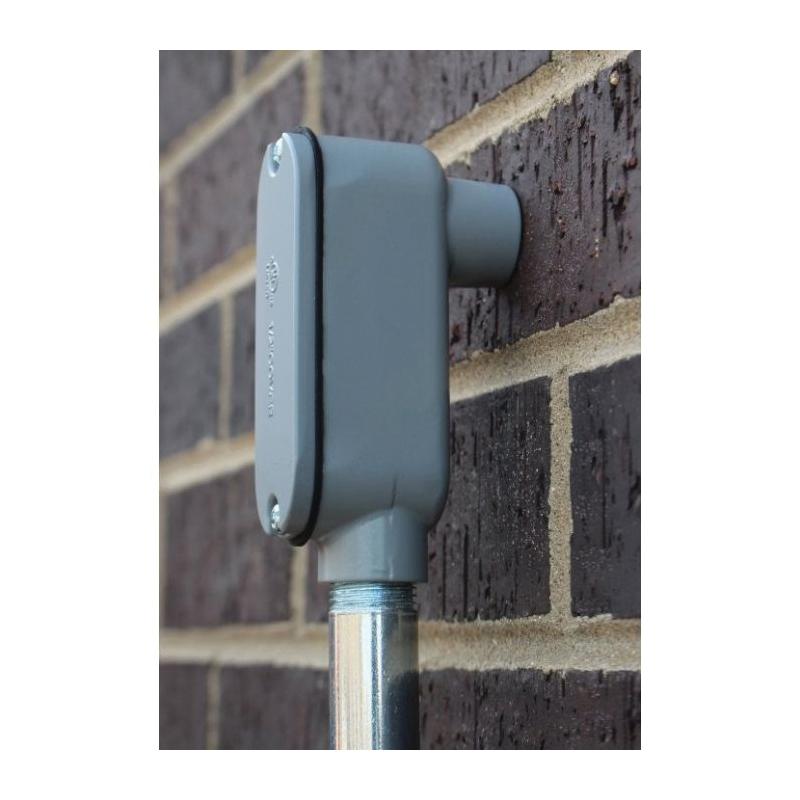 1-1/2 in LB-style conduit bodies are attached to 1-1/2 in threaded rigid or IMC conduits when a change of direction is required. Their removable cover makes general maintece and wire pulling and feed through easy and convenient. Commonly used for electrical service entrance wires or as an economical convenience box when extra wire capacity is needed. Garvin Industries LB-style conduit bodies save time and money by eliminating costly bending of large conduits in order to change the directions of conduit runs. They allow the installer to easily bend wires into the smooth turns. Their powder coated finish and watertight gasket ensure a weatherproof installation.