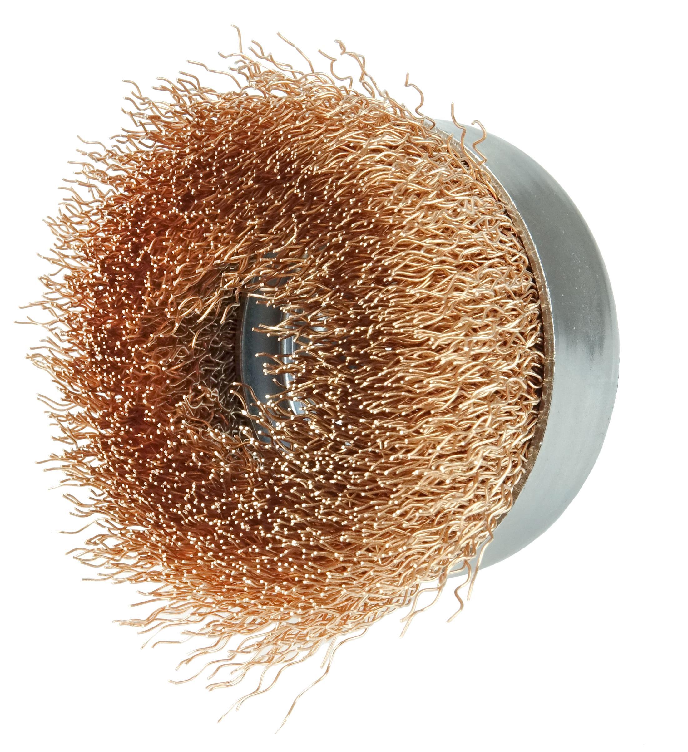 Weiler® 14616 Non-Sparking Cup Brush, 4 in Dia Brush, 5/8-11 UNC Arbor Hole, 0.02 in Dia Filament/Wire, Crimped, Bronze Fill