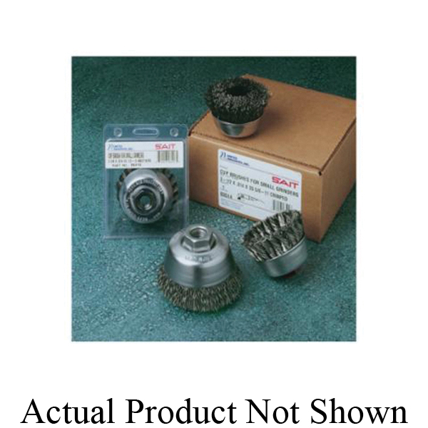 United Abrasives-SAITIndustrial 03512 Small Cup Brush, 3-1/2 in Dia Brush, 5/8-11 Arbor Hole, 0.02 in Dia Filament/Wire, Knot, 302 Stainless Steel Fill
