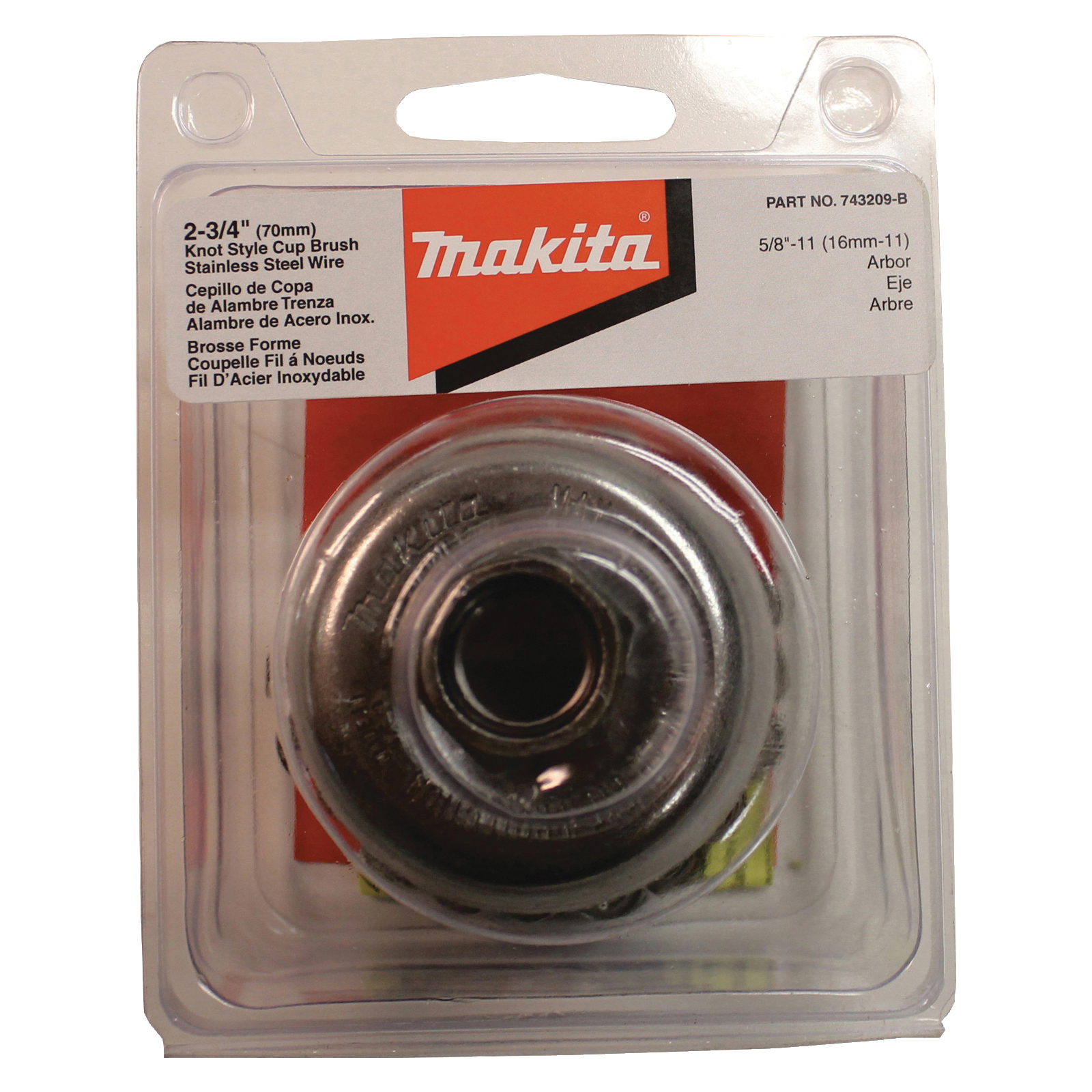 Makita® 743209-B Rugged Wire Cup Brush, 2-3/4 in Dia Brush, 5/8-11 Arbor Hole, 0.02 in Dia Filament/Wire, Knotted, 302 Stainless Steel Fill