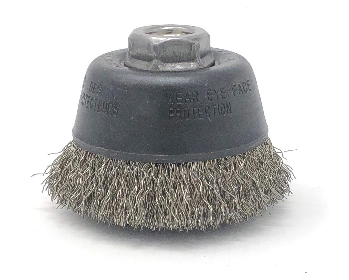 United Abrasives-SAIT 3506 Small Brush, 2-3/4 in Dia Brush, 5/8-11 in Arbor Hole, 2-3/4 in Dia Filament/Wire, Knot, Stainless Steel Fill