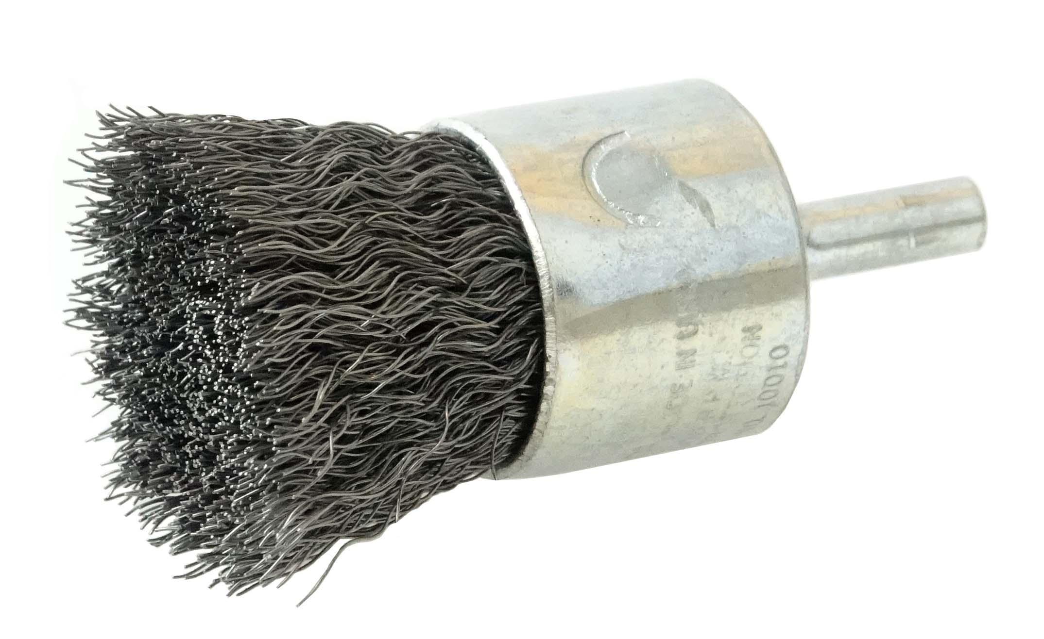 Weiler® 10010 Stem Mount End Brush, 1 in Dia Brush, Crimped, 0.0104 in Dia Filament/Wire, Steel Fill, 1 in L Trim