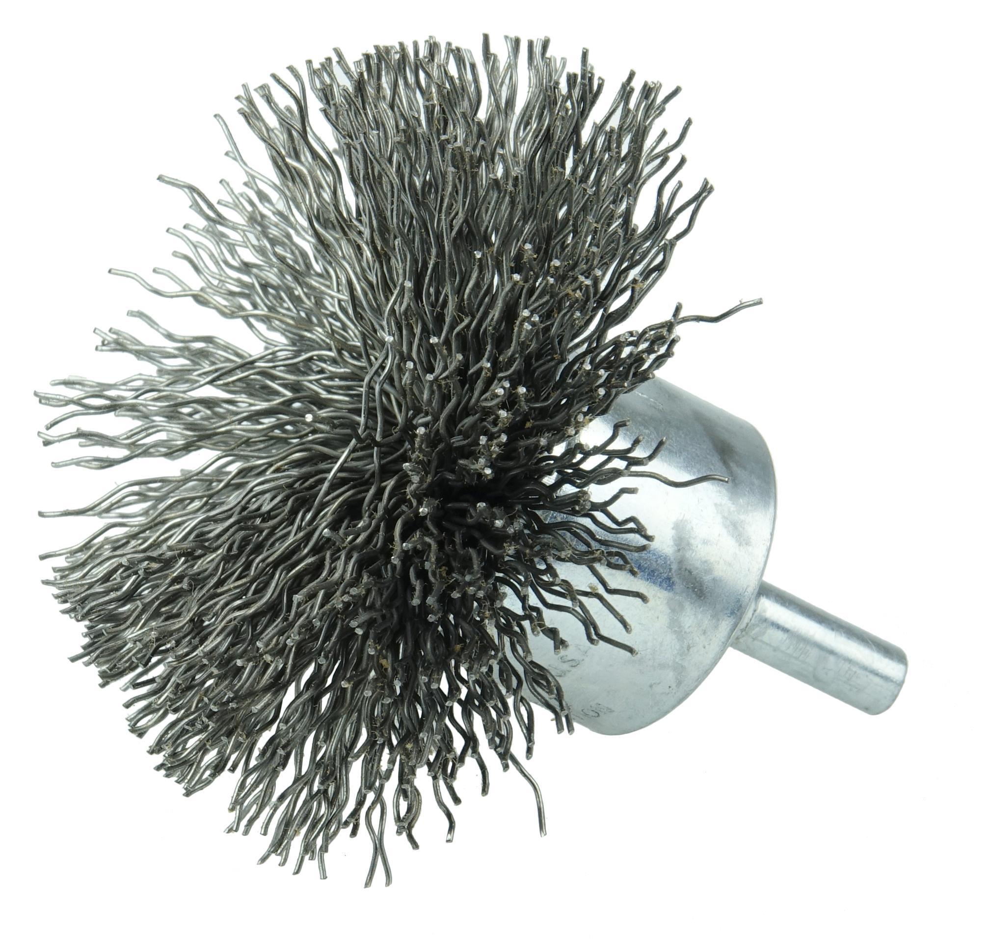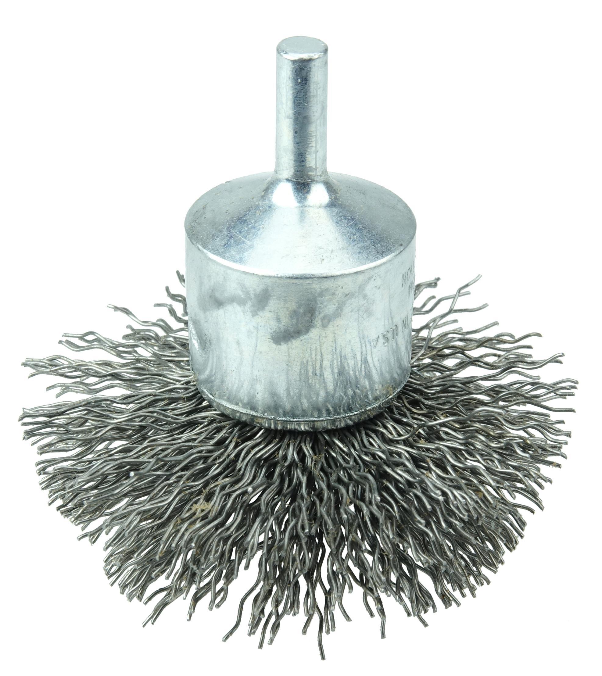 Weiler® 10040 Circular Flared End Brush, 2-3/4 in Dia Brush, Crimped, 0.02 in Dia Filament/Wire, Steel Fill