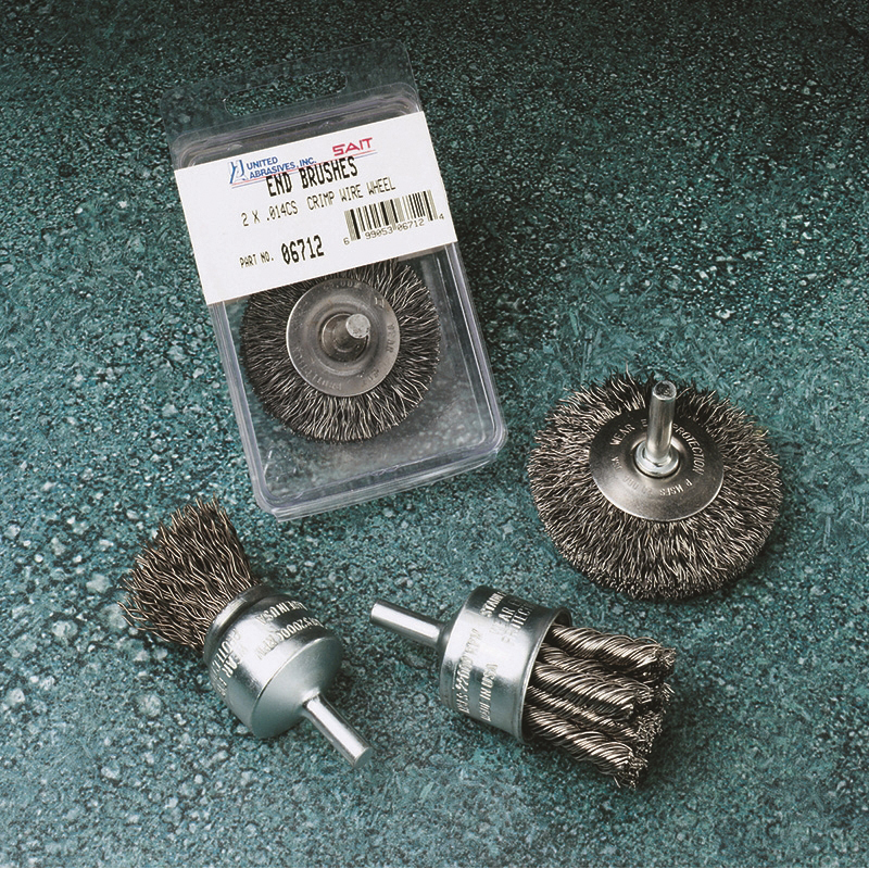 United Abrasives-SAIT 02703 End Brush, 3/4 in Dia Brush, Full Cable Twist Knot, 0.014 in Dia Filament/Wire, Carbon Steel Fill, 1-1/8 in L Trim
