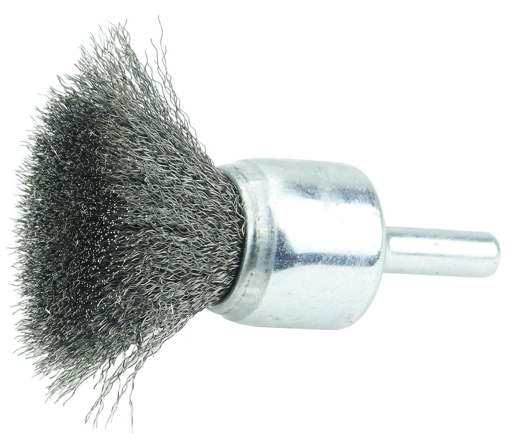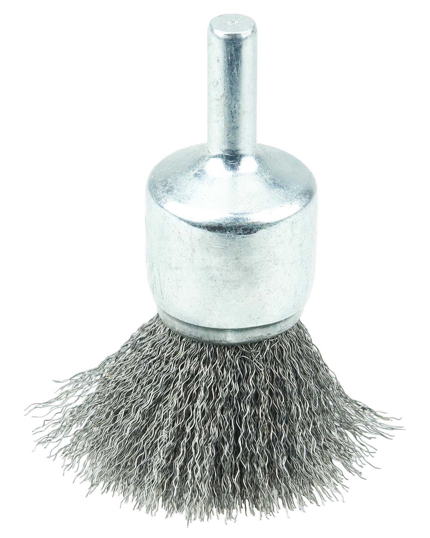 Weiler® 10006 Stem Mount End Brush, 3/4 in Dia Brush, Crimped, 0.0104 in Dia Filament/Wire, Steel Fill, 7/8 in L Trim