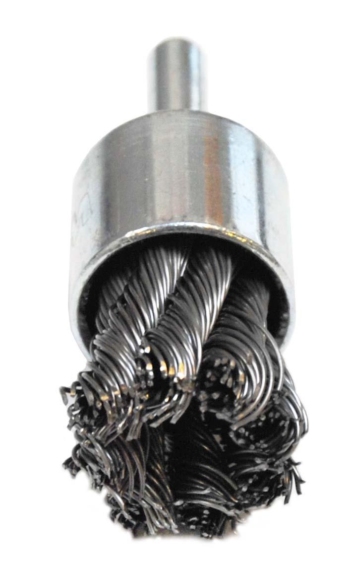 Weiler® 10026 Stem Mount End Brush, 3/4 in Dia Brush, Knot, 0.02 in Dia Filament/Wire, Steel Fill, 7/8 in L Trim
