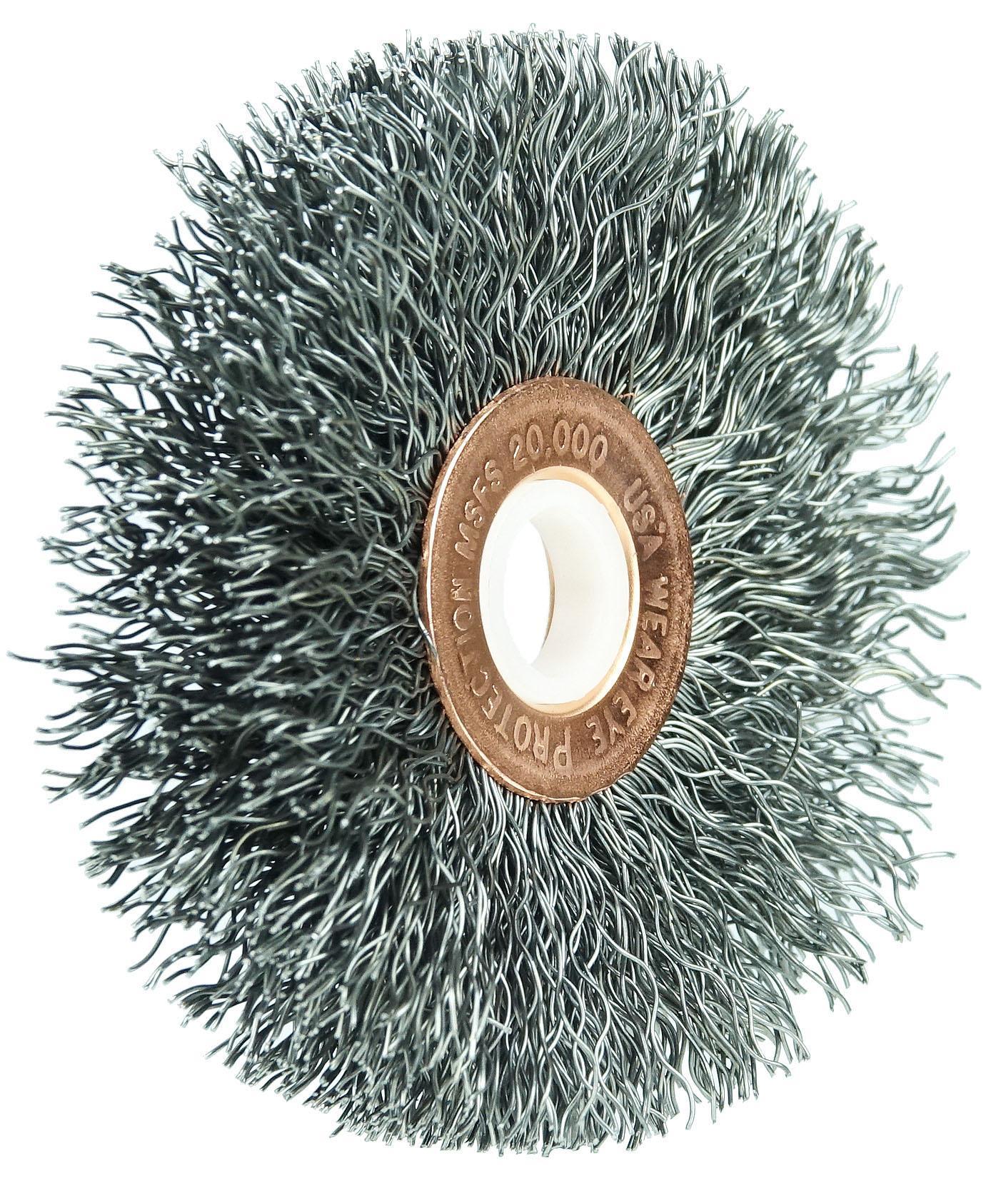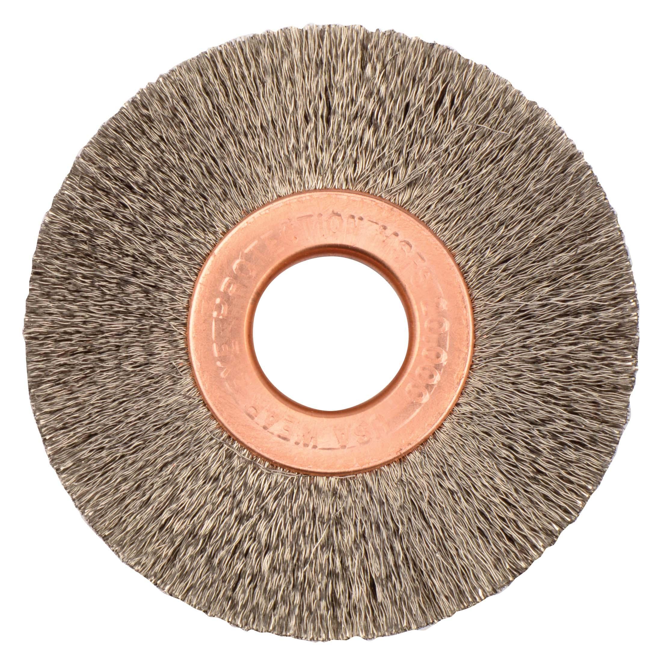 - Weiler's small diameter crimped wire wheels feature a plain arbor hole for use on a variety of portable tools and stationary machines