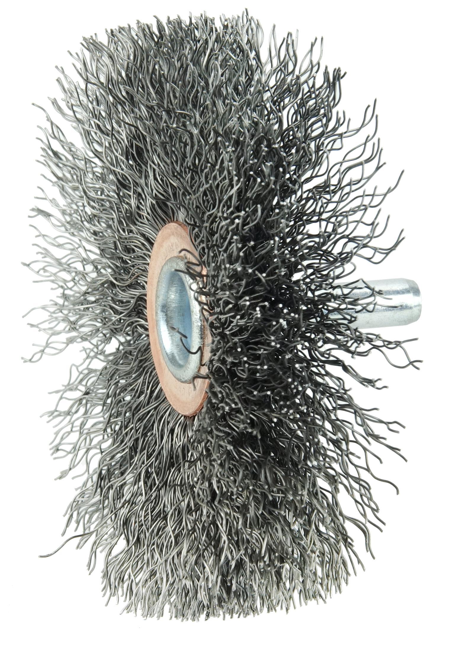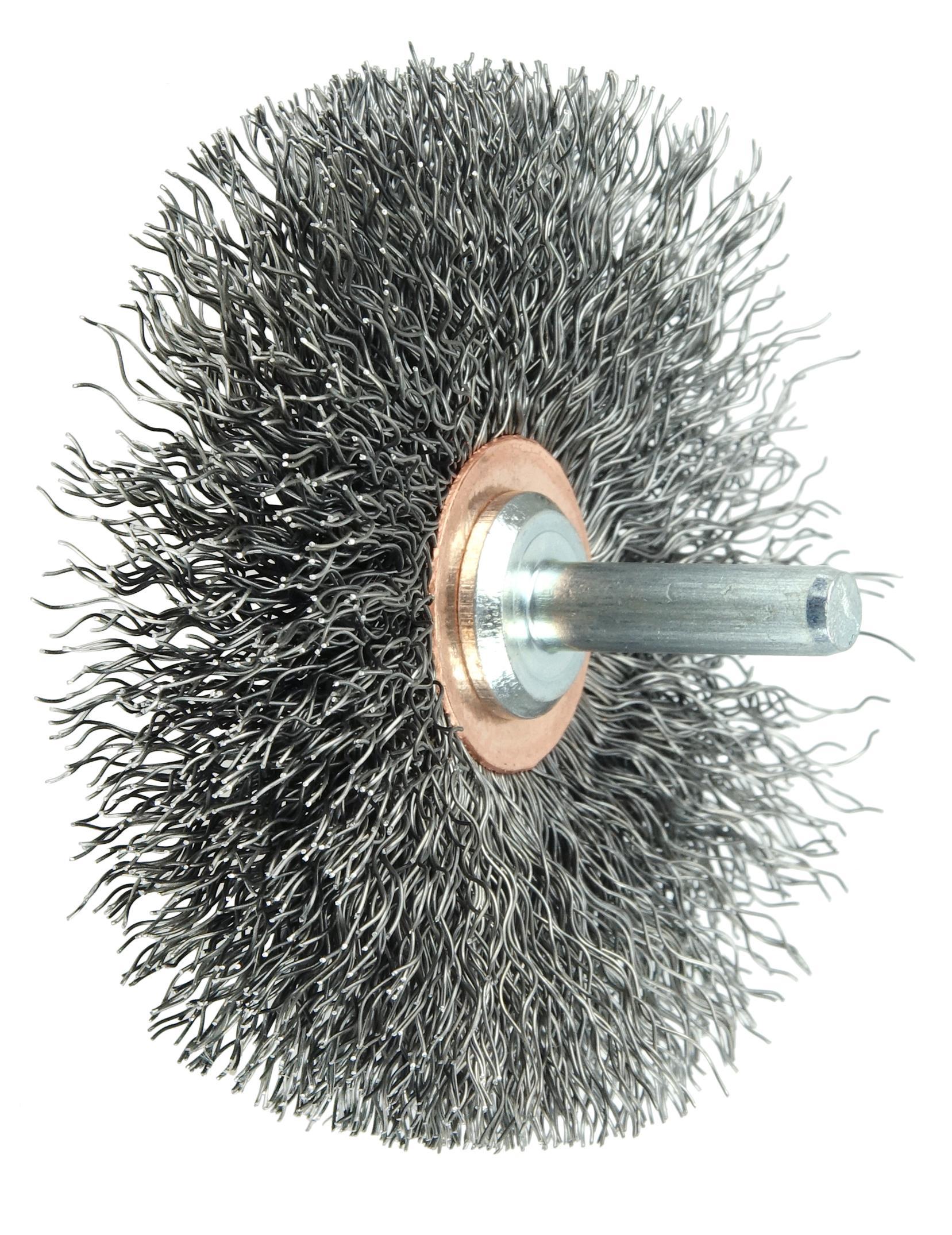 - Crimped wire wheels with a permanently-attached 1/4 in stem or shank are primarily intended for use on high speed die grinders