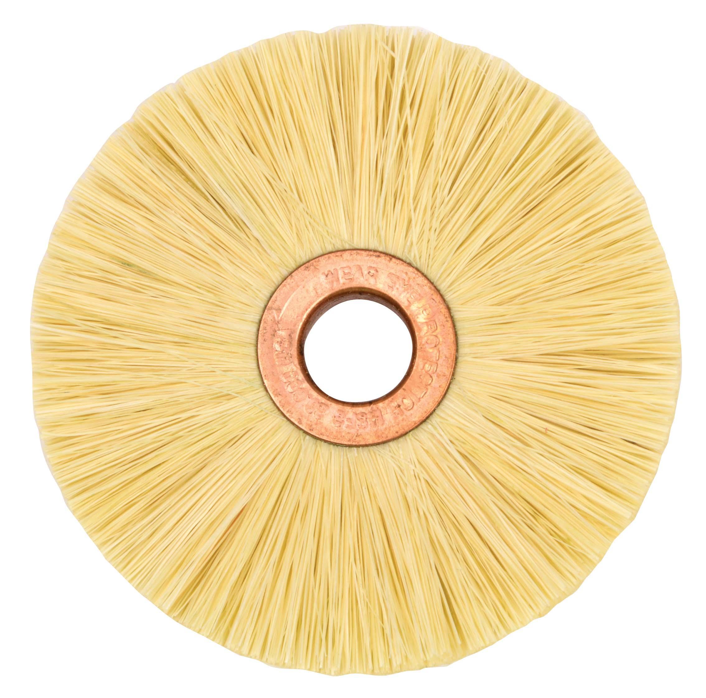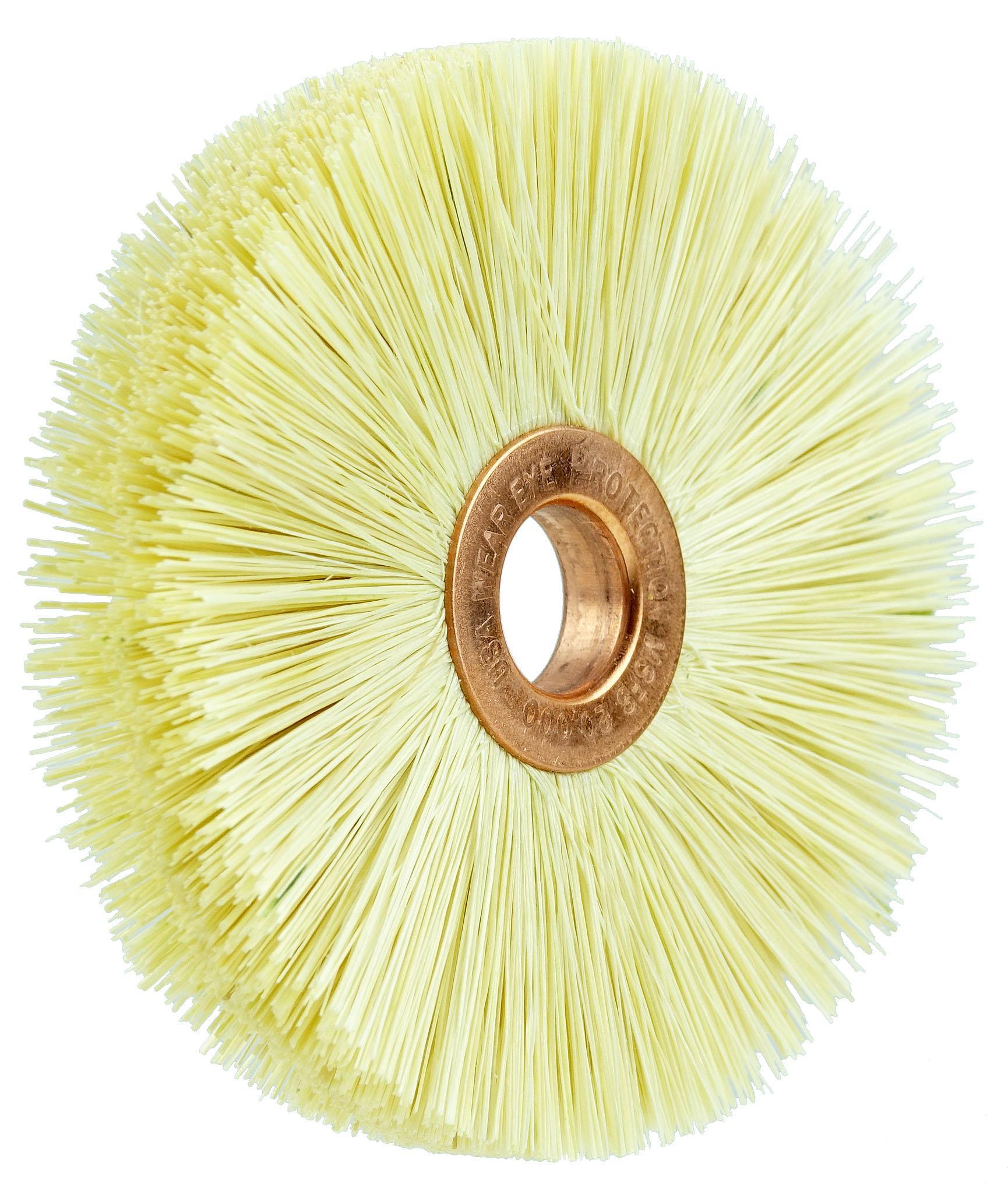 Weiler® 17263 Small Diameter Wheel Brush, 3 in Dia Brush, 3/8 in W Face, 0.016 in Dia Crimped Filament/Wire, 1/2 in Arbor Hole