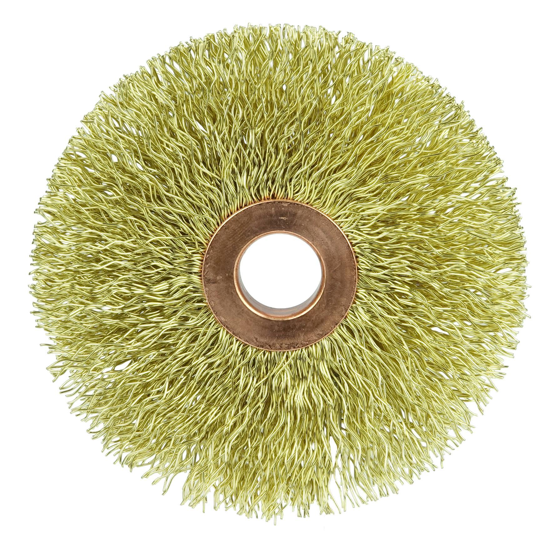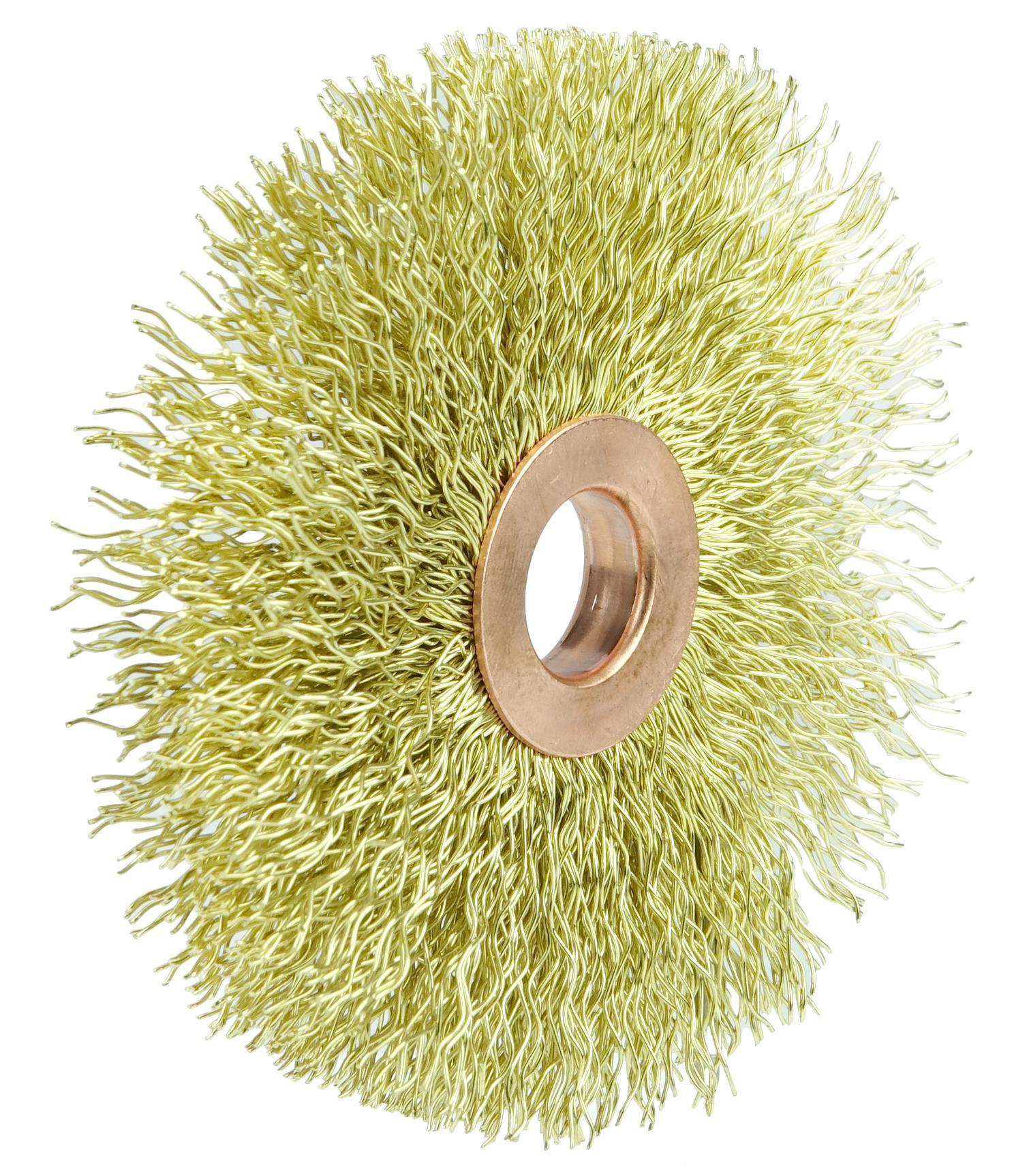 Weiler® 29078 Non-Sparking Wheel Brush, 3 in Dia Brush, 5/8 in W Face, 0.014 in Dia Crimped Filament/Wire, 1/2 in Arbor Hole