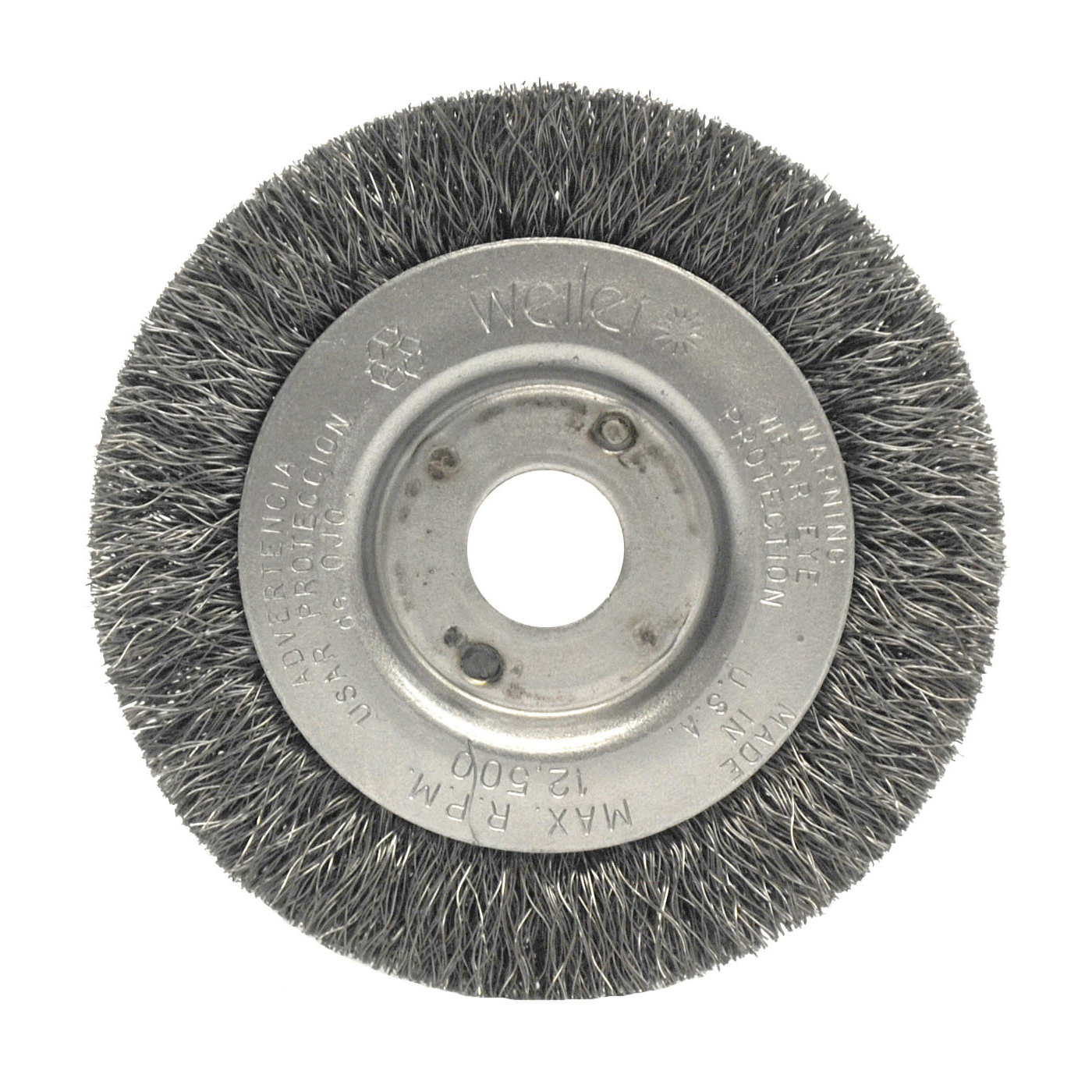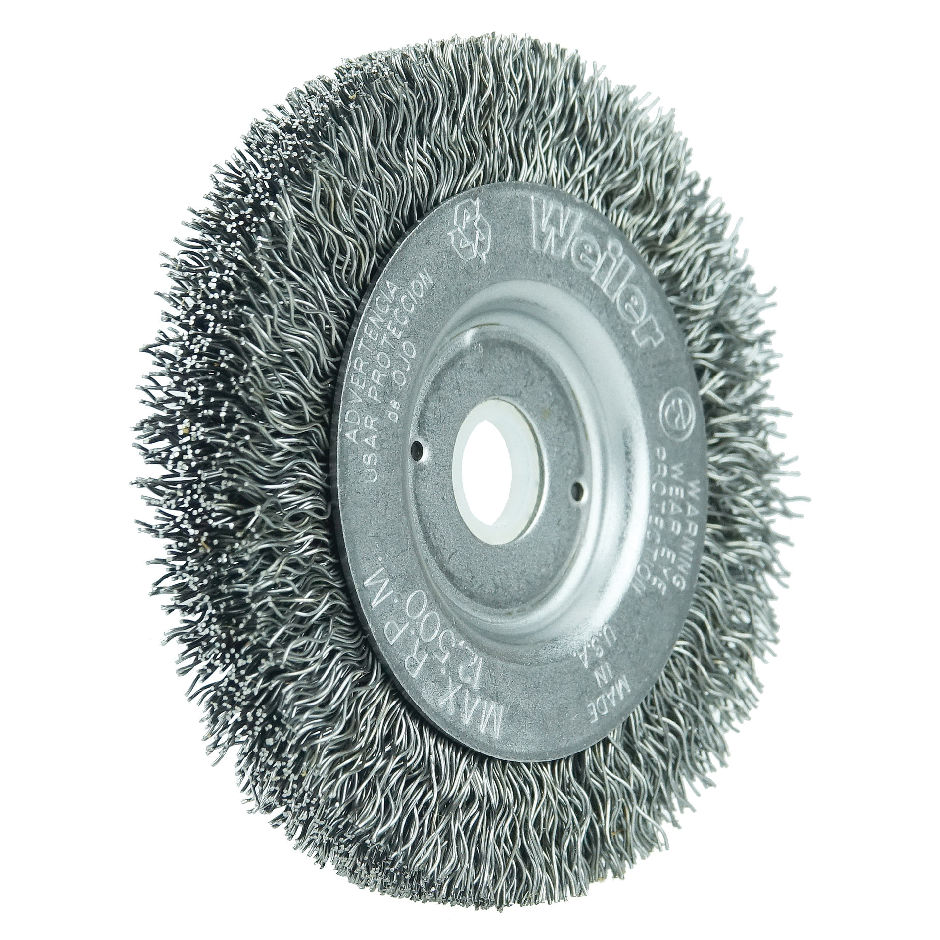 Weiler® 00124 TLN-4 Narrow Face Wheel Brush, 4 in Dia Brush, 1/2 in W Face, 0.0095 in Dia Filament/Wire Crimped Filament/Wire, 1/2 to 3/8 in Arbor Hole
