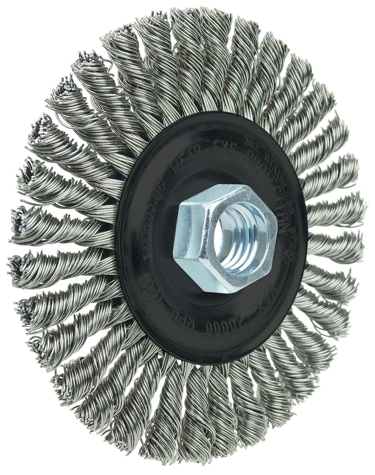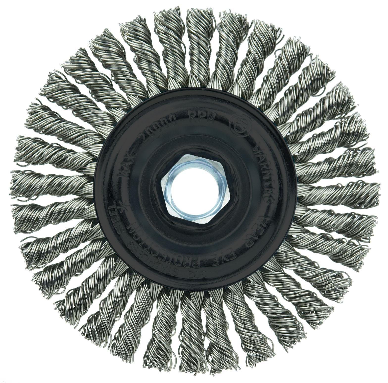 Wolverine™ 36219 Narrow Face Wheel Brush, 4 in Dia Brush, 0.02 in Dia Stringer Bead Knot Filament/Wire, 5/8-11 Arbor Hole