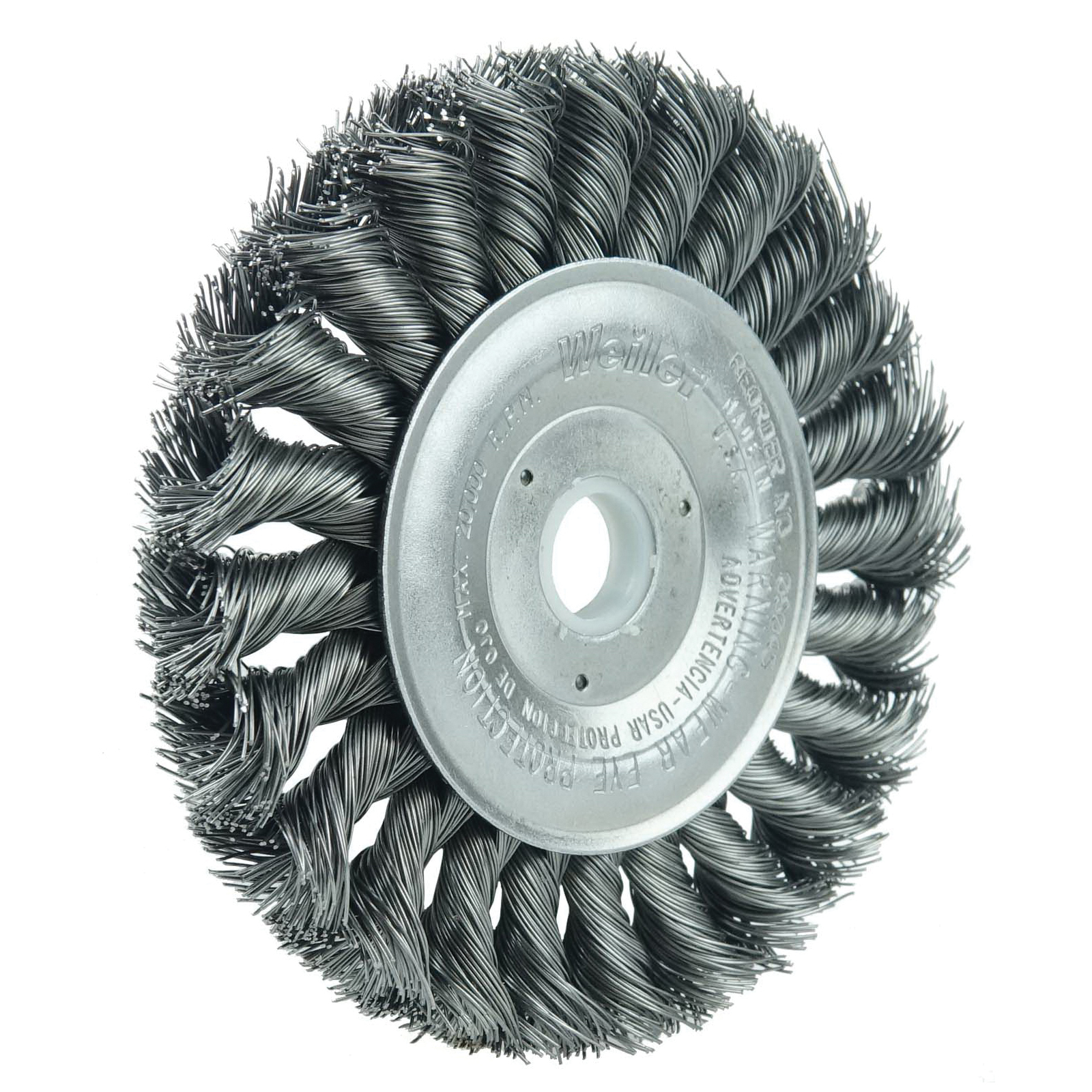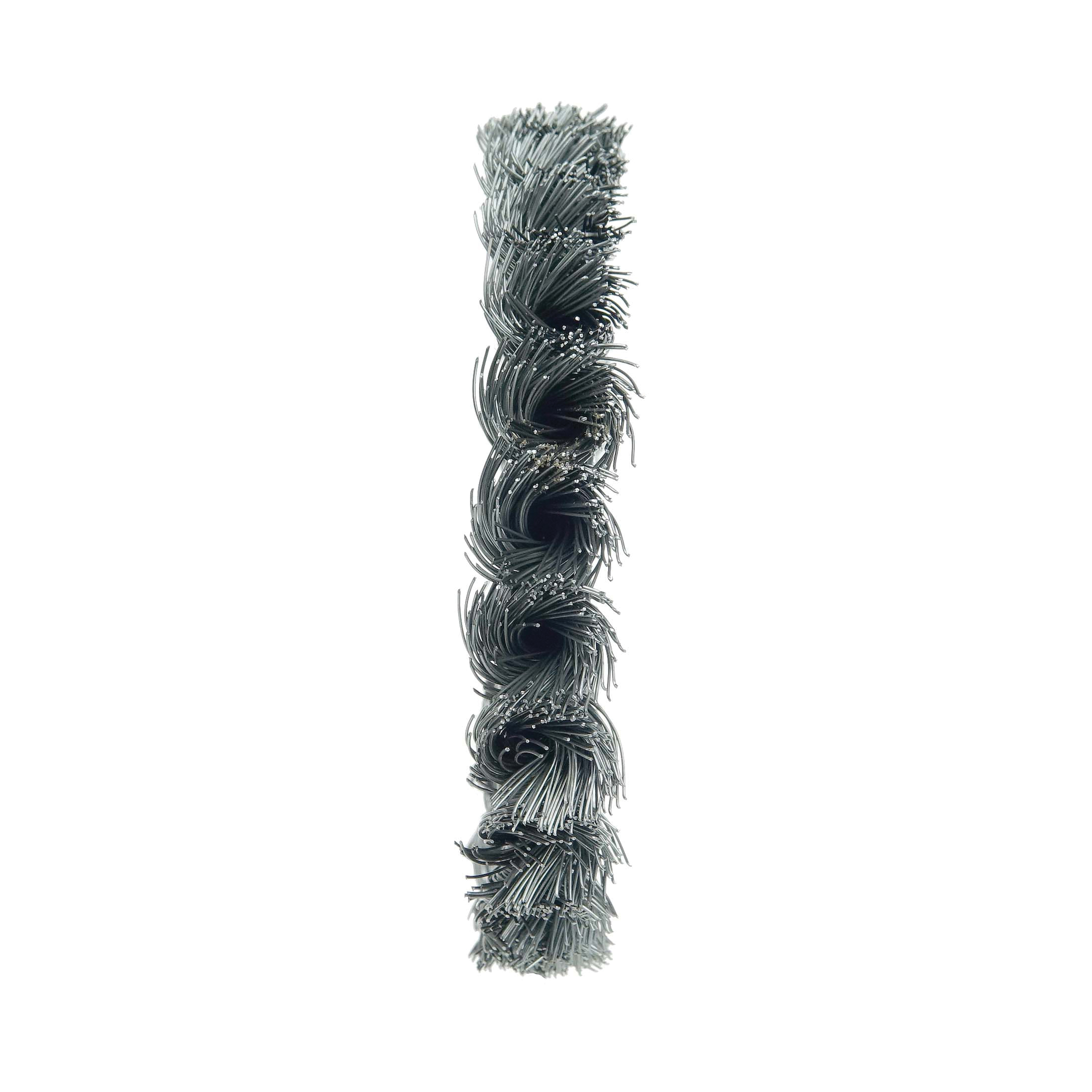 Weiler® 12 in standard twist knot wire Wheel Brush provides a heavy duty brushing action with some flexibility for demanding deburring cleaning and surface preparation applications on somewhat irregular surfaces. Featuring Weiler® individual knot hole construction, these radial brushes are available in heat treated steel, type 302 stainless steel and bronze wire for use in a wide variety of applications. 1-1/4 in arbor hole for use on bench/pedestal grinder, die grinder, right angle die grinder and straight grinders.