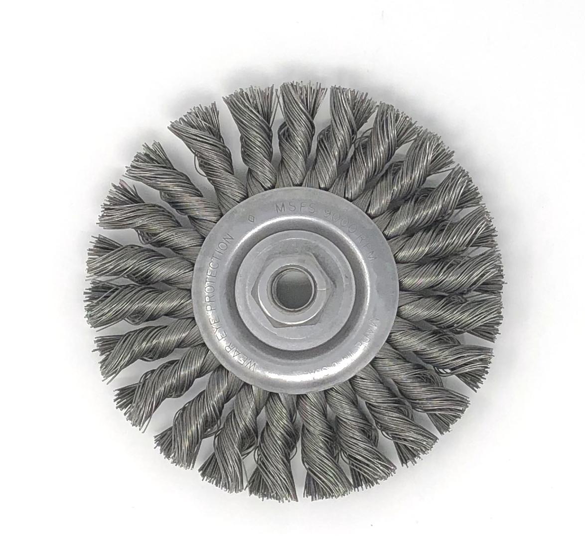 - Crimped carbon steel wire provides flexibility and a wider work face than knot style