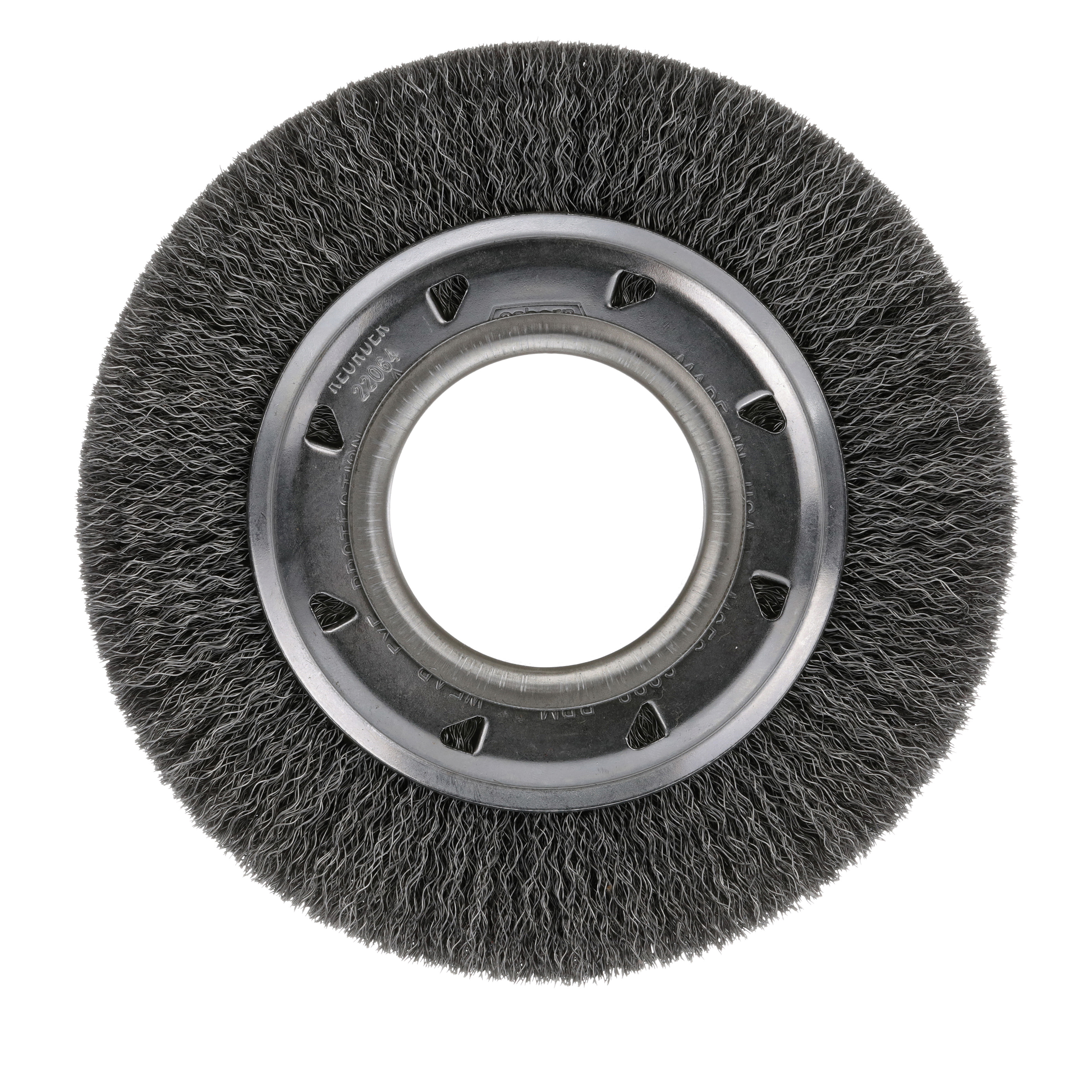 Osborn 22087 Medium Face Wheel Brush With (2) 1/2 x 1/4 in Keyways, 8 in Dia Brush, 5/8 in W Face, 0.02 in Dia Crimped Filament/Wire, 2 in Arbor Hole