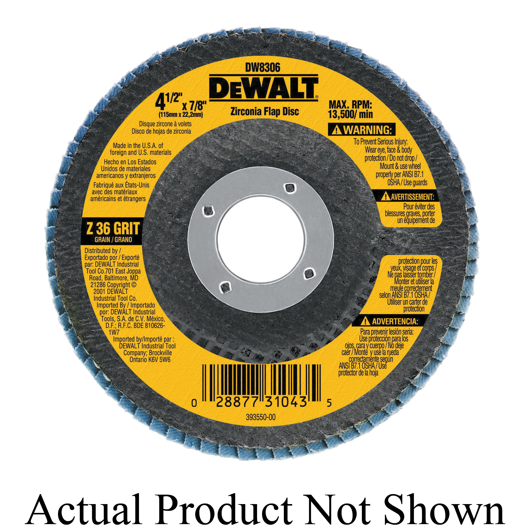 DeWALT® XP™ DW8254 Contaminant-Free Extended Performance High Density Coated Abrasive Flap Disc, 4-1/2 in Dia, 40 Grit, Coarse Grade, Zirconia Alumina Abrasive, Type 27 Disc