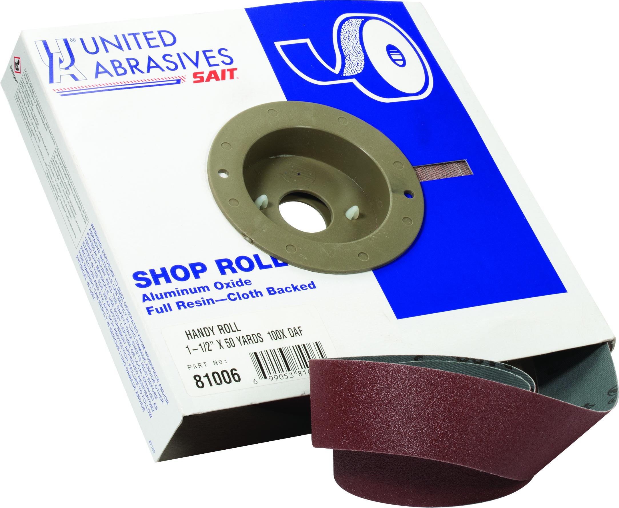 United Abrasives-SAIT 81006 DA-F Handy Utility Coated Handy Roll, 50 yd L x 1-1/2 in W, 100 Grit, Fine Grade, Aluminum Oxide Abrasive, Cloth Backing