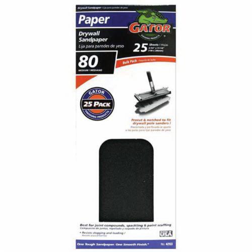 Gator® GatorGrit 3310 Coated Sanding Sheet, 11-1/4 in L x 4-1/4 in W, 80 Grit, Silicon Carbide Abrasive, Paper Backing