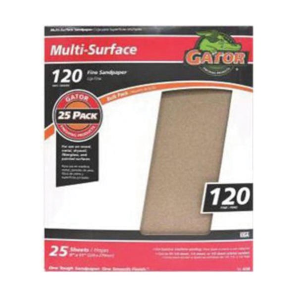 Gator® GatorGrit 3263 Multi-Purpose Coated Sanding Sheet, 11 in L x 9 in W, 120 Grit, Aluminum Oxide Abrasive, Paper Backing