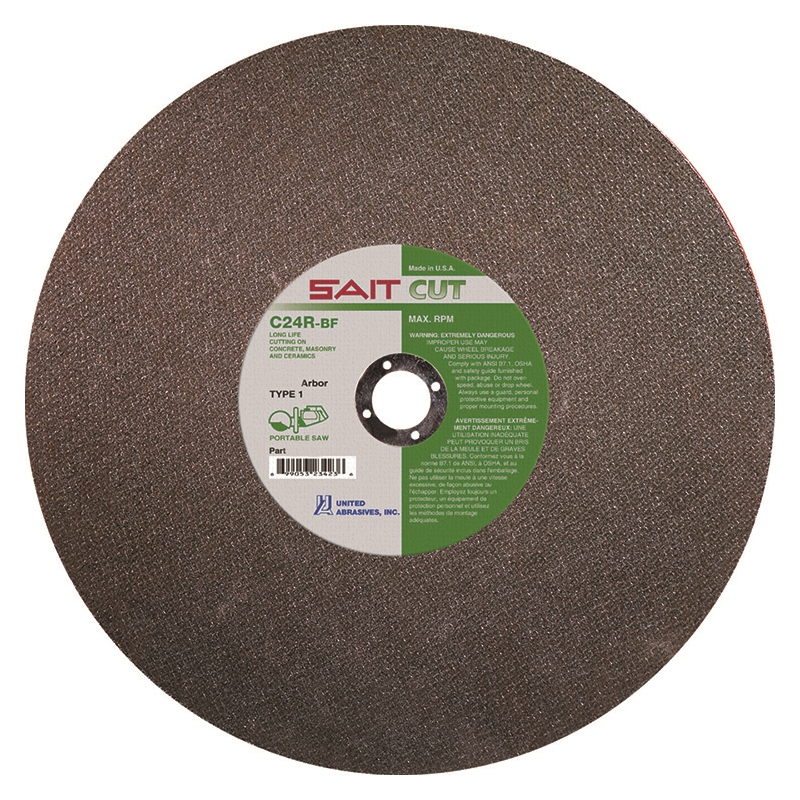 United Abrasives-SAIT 23413 Type 1 Burr Free Portable Saw Cut-Off Wheel, 12 in Dia x 1/8 in THK, 1 in Center Hole, C24R Grit, Silicon Carbide Abrasive
