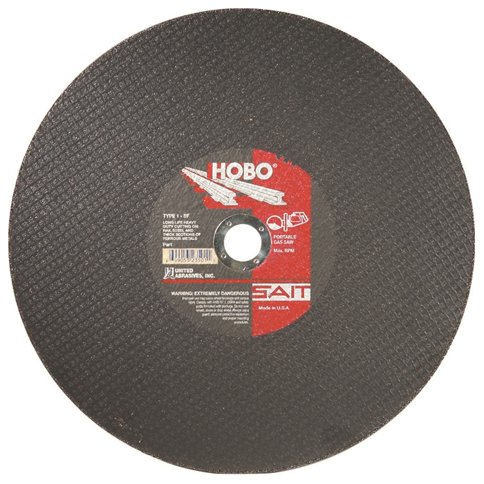 United Abrasives-SAIT HOBO® 23501 Type 1 Portable Saw Cut-Off Wheel, 14 in Dia x 1/8 in THK, 1 in Center Hole, 24 Grit, Aluminum Oxide Abrasive