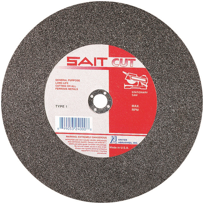 United Abrasives-SAIT 24092 Type 1 Burr Free Stationary Saw Cut-Off Wheel, 20 in Dia x 3/16 in THK, 1 in Center Hole, A36R Grit, Aluminum Oxide Abrasive