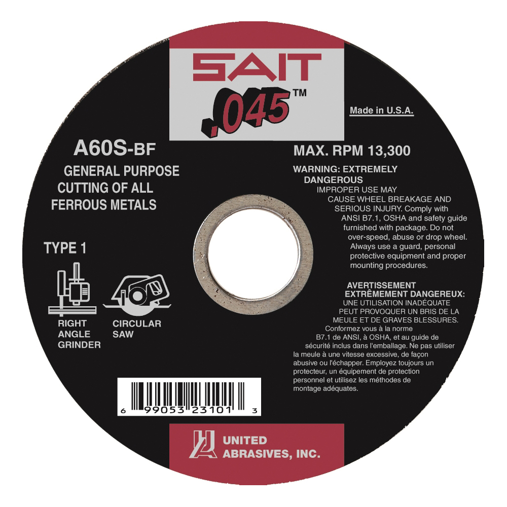 United Abrasives-SAIT 23101 Thin High Speed Cut-Off Wheel, 4-1/2 in Dia x 0.045 in THK, 7/8 in Center Hole, A60S Grit, Aluminum Oxide Abrasive