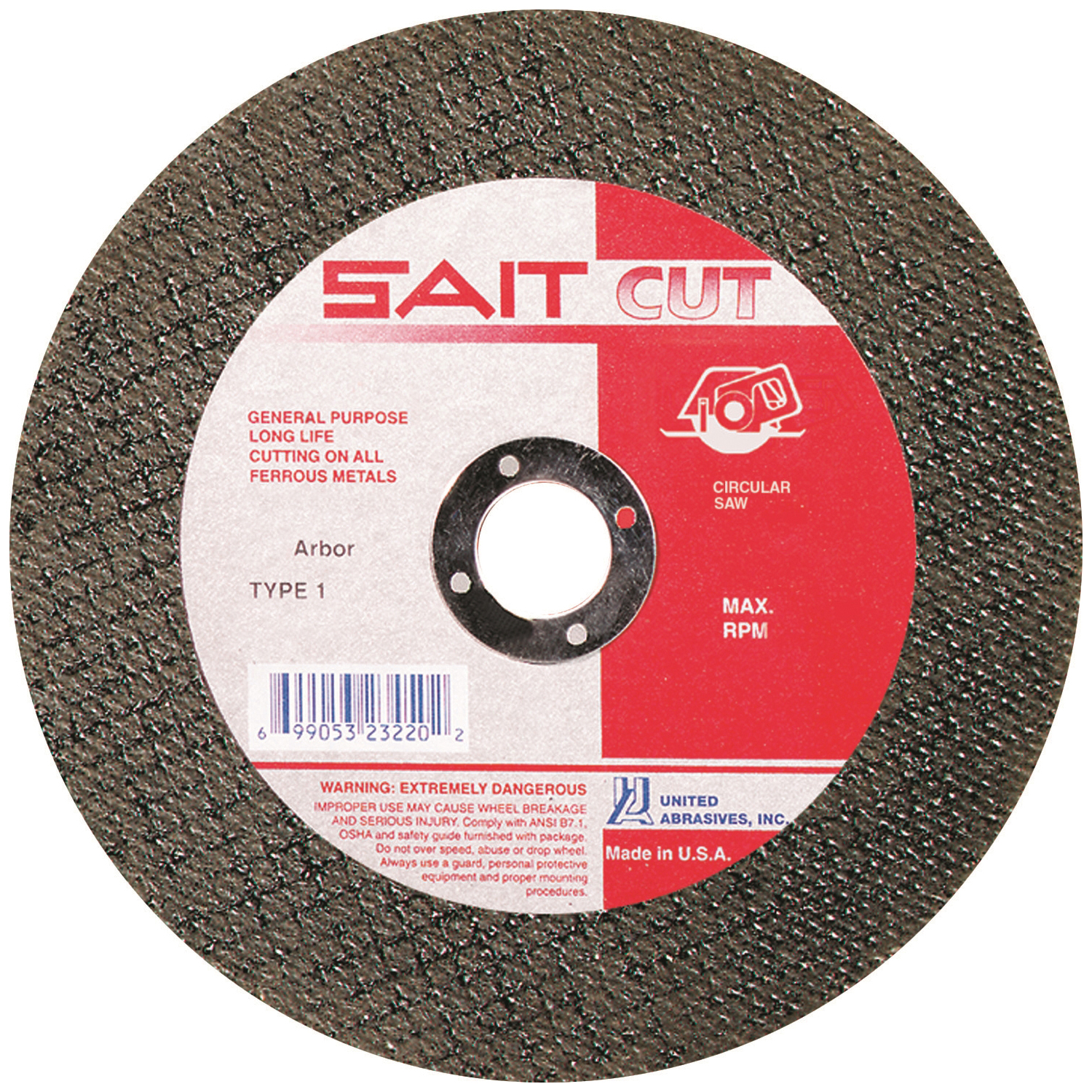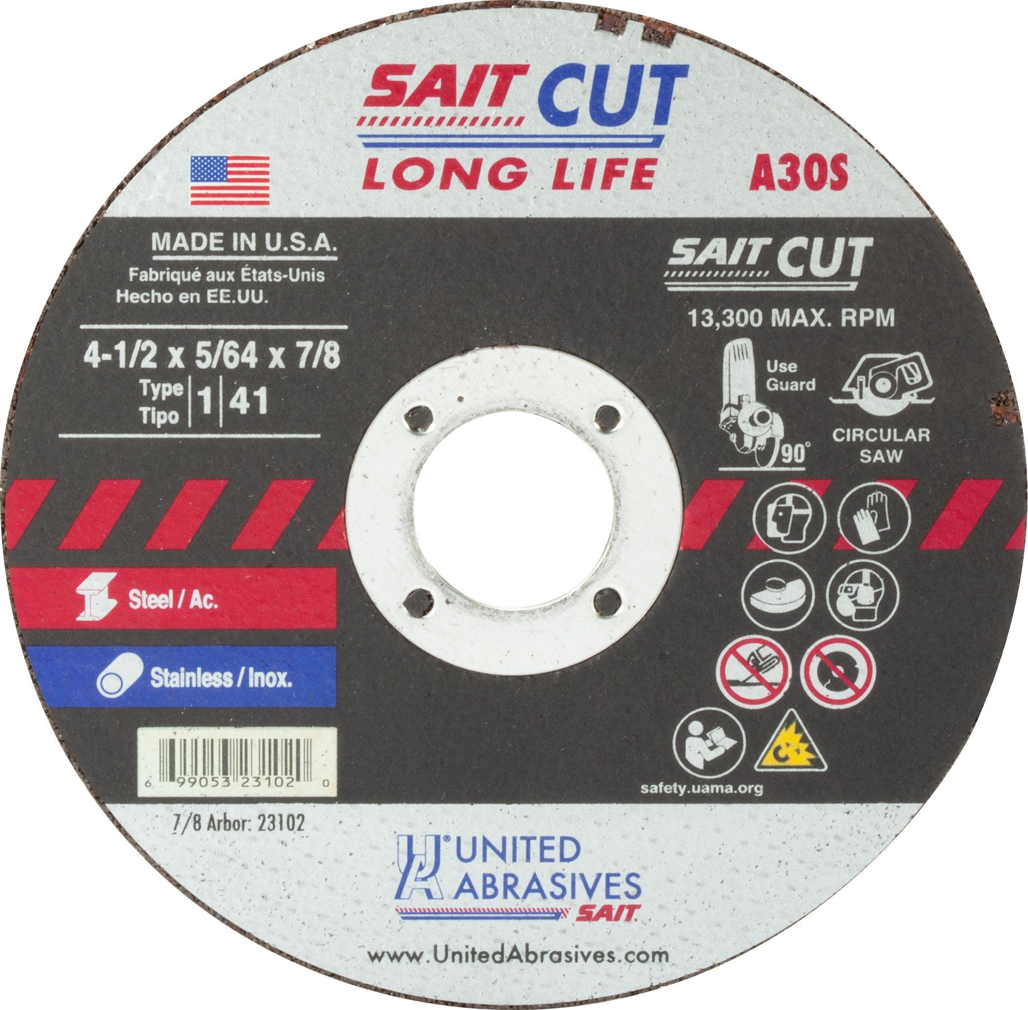 United Abrasives-SAIT 23102 Type 1 Burr Free Portable Saw Cut-Off Wheel, 4-1/2 in Dia x 5/64 in THK, 7/8 in Center Hole, A30S Grit, Aluminum Oxide Abrasive