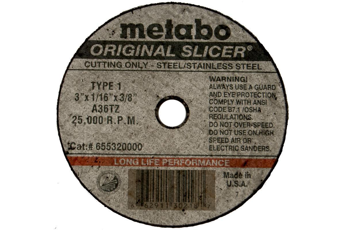 metabo® 655325000 Original Slicer Long Life Type 1 Straight Tough Cut-Off Wheel, 4 in Dia x 1/16 in THK, 1/4 in Center Hole, 36 Grit, Aluminum Oxide Abrasive