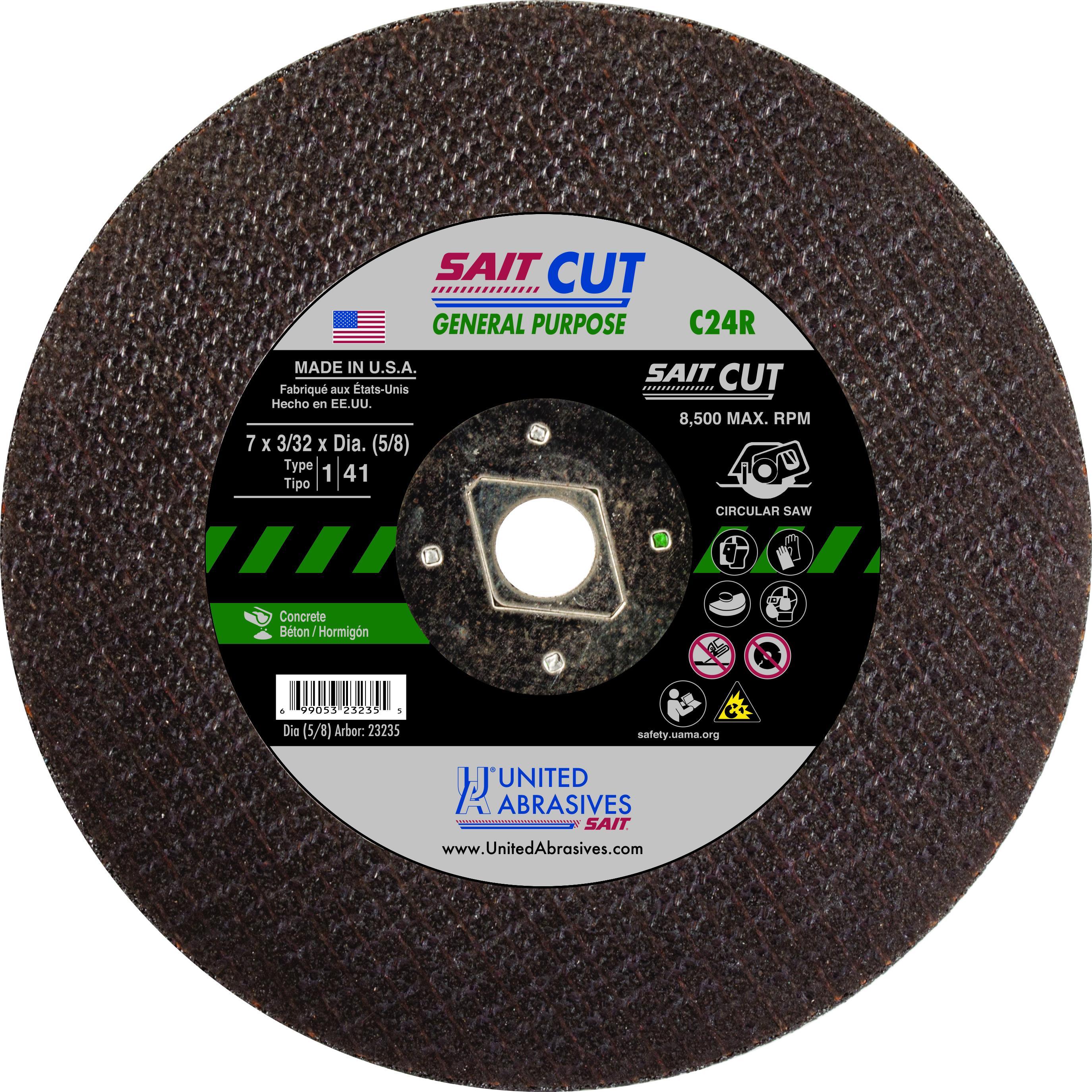 United Abrasives-SAIT 23235 Type 1 Burr Free Portable Saw Cut-Off Wheel, 7 in Dia x 3/32 in THK, 5/8 in Center Hole, C24R Grit, Silicon Carbide Abrasive
