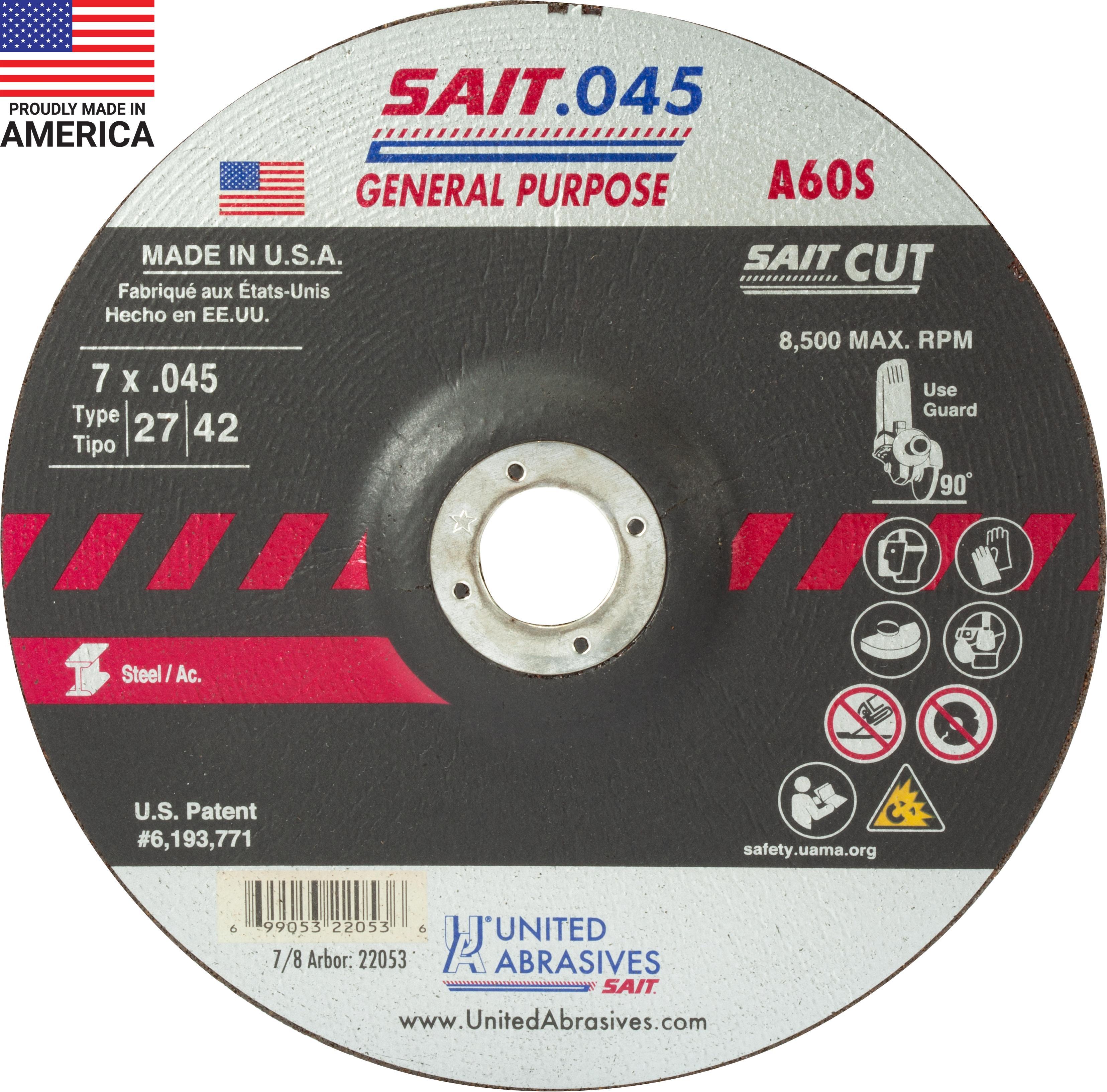 Our most popular .045” cutting wheel, the United Abrasives A60S is great for long lasting, general purpose cutting. The A60S is composed of a special aluminum oxide grain offering the fastest cutting, longest lasting thin wheels. United Abrasives/SAIT wheels are externally reinforced with fiberglass layers to provide ultimate safety in a thin wheel. Proudly manufactured in the USA.