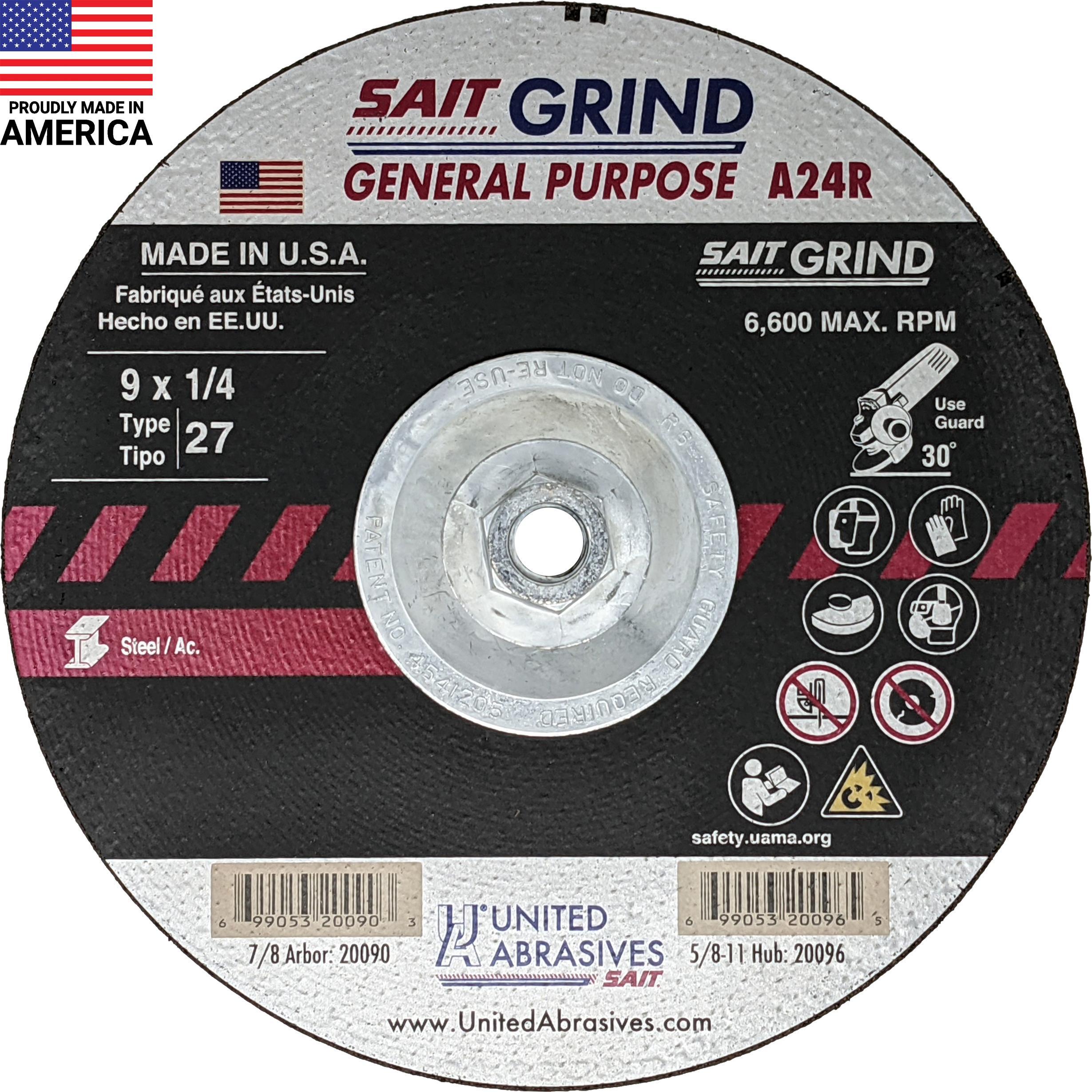 United Abrasives-SAIT 20096 General Purpose Depressed Center Wheel, 9 in Dia x 1/4 in THK, 24 Grit, Aluminum Oxide Abrasive