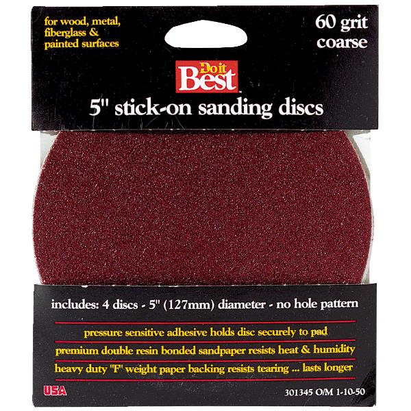 5" COARSE 60-GRIT ADHESIVE-BACKED SANDING DISC--4 PACK - JWH301345 >