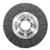 CRIMPED WIRE BENCH WHEEL BRUSH, 6" X .008 WIRE NARROW FACE WITH 1/2" - 5/8" ARBOR-FOR72751 >