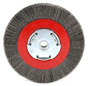 72751 Crimped Wire Bench Wheel Brush, 6" X .008 Wire Narrow Face With 1/2" - 5/8"