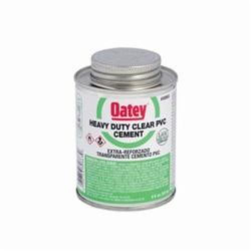 Oatey® PVC Heavy Duty Medium Set Clear Cement is recommended for DWV, pressure pipe, potable water and electrical applications. Its thick formula fills gaps in large diameter pipe and loose-fitting joints and is easy to apply with included in-lid dauber. This clear, heavy duty, medium set cement can be used to solvent weld all schedules and classes of PVC pipe and fittings with interference fit up to 18 in. diameter for non-pressure and 12 in. diameter for pressure pipes. Oatey products have earned the trust of plumbing professionals for over 100 years.