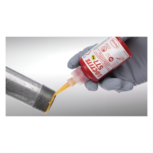 Loctite® 577 is designed for the locking and sealing of metal pipes and fittings as well as other threaded assemblies. The product provides an instant, low-pressure seal for metal pipes and fittings. It will not creep, shrink or shred. It has excellent chemical and thermal resistance and offers less migration of liquid product after application.