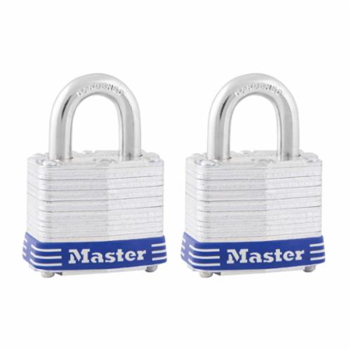 Master Lock® 3T Non-Rekeyable Safety Padlock, Alike Key, 9/32 in Shackle, Laminated Steel Body, 4-Pin Tumbler Locking
