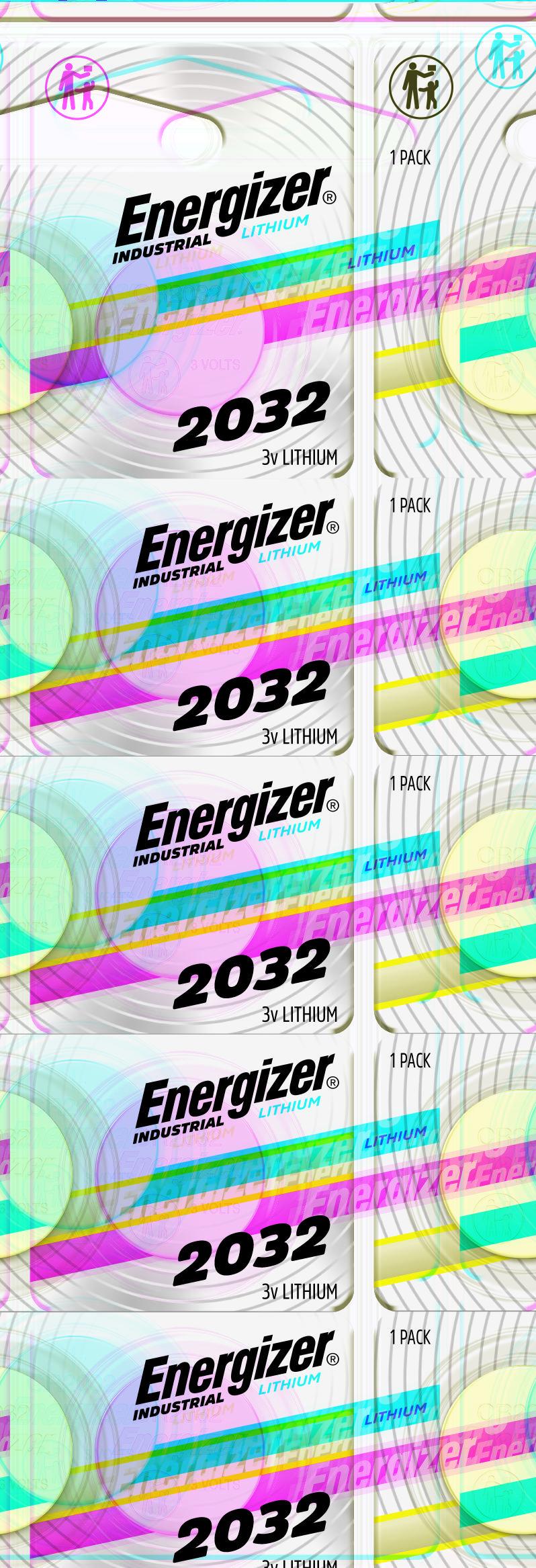 - 5-pack of Energizer Industrial 2032 Lithium Batteries packaged to conveniently tear apart for easy distribution or whenever you need power for specialty devices