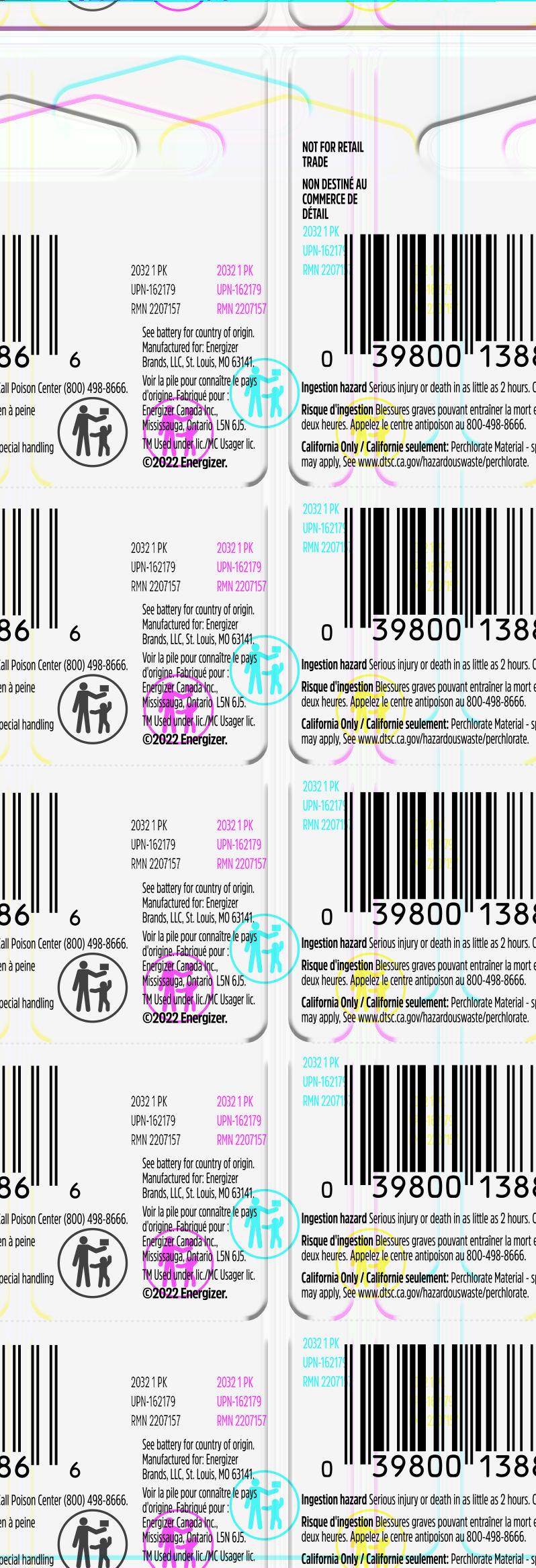 Energizer® ECRN2032 Coin Cell Battery, Lithium-Manganese Dioxide, 3 V Nominal, 254 mAh Nominal, 2032
