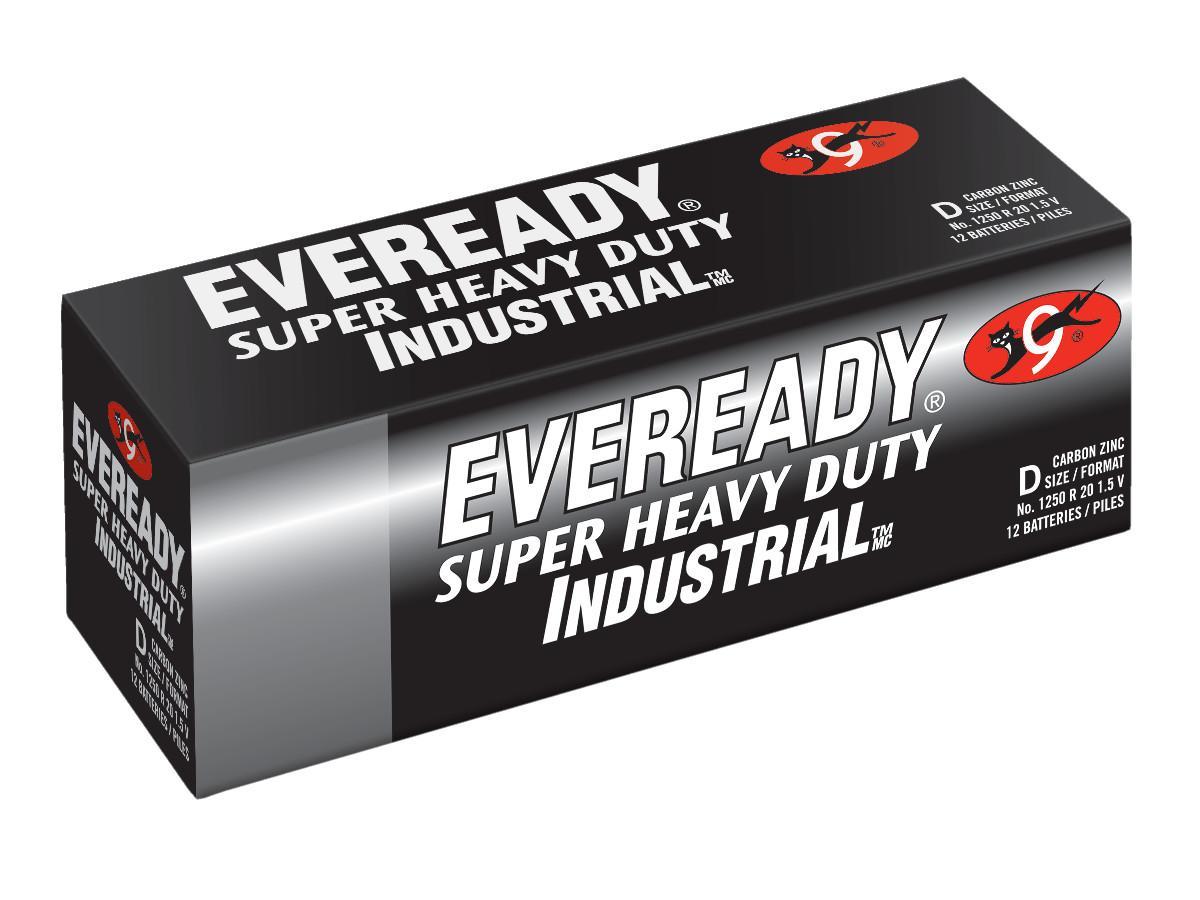 Eveready® Super Heavy Duty® 1250 Battery, Zinc-Manganese Dioxide, 1.5 V Nominal, 8000 mAh Nominal, D