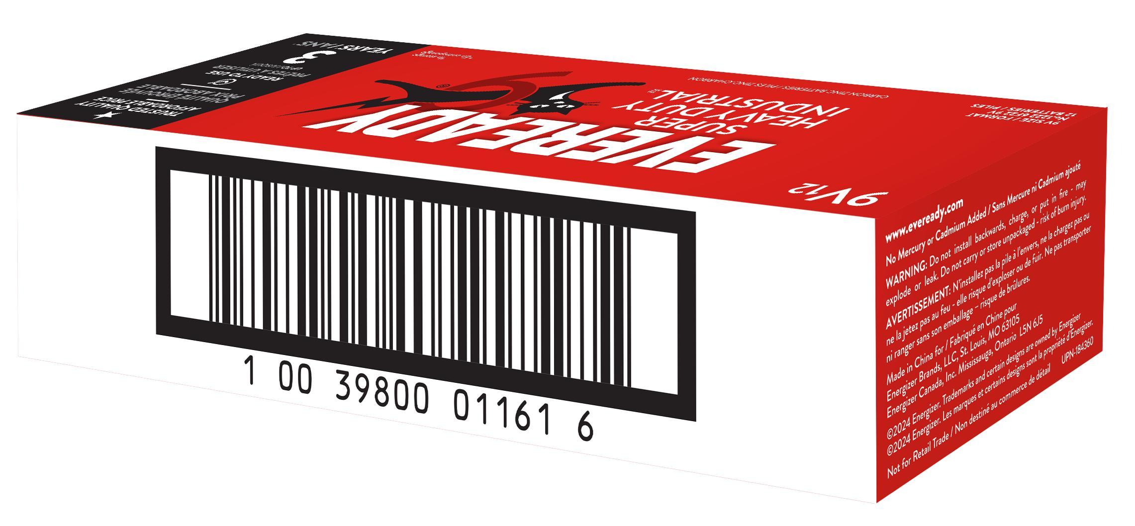 Energizer® 1222 Super Heavy Duty Battery, Zinc-Manganese Dioxide, 9 V Nominal, 400 mAh Nominal
