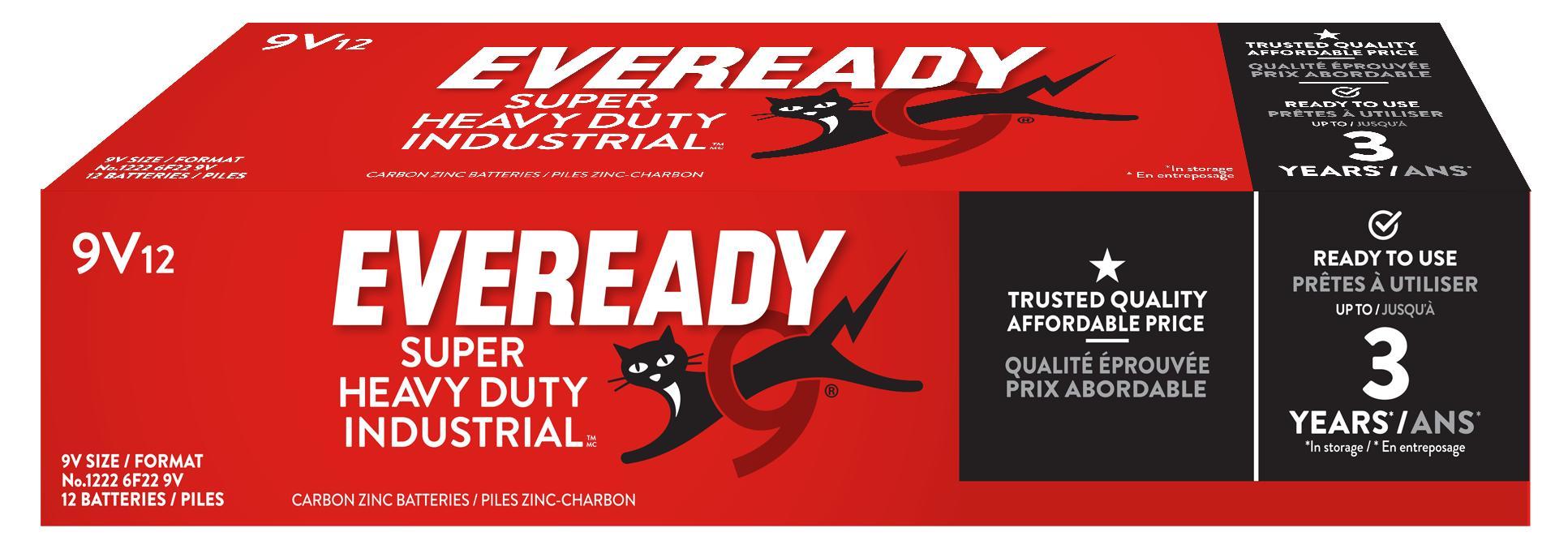 Eveready® Super Heavy Duty® is the affordable carbon zinc solution that provides power for you and your family's basic power needs. Eveready® Super Heavy Duty® brand offers a complete line of AA, AAA, C, D, 9V and 6V lantern Batteries and are an economical choice for clocks, flashlights, radios and other devices that are low drain. Since 1896 Eveready® Batteries have been providing dependable portable power. For every family, everywhere, every day. Eveready® for Life.