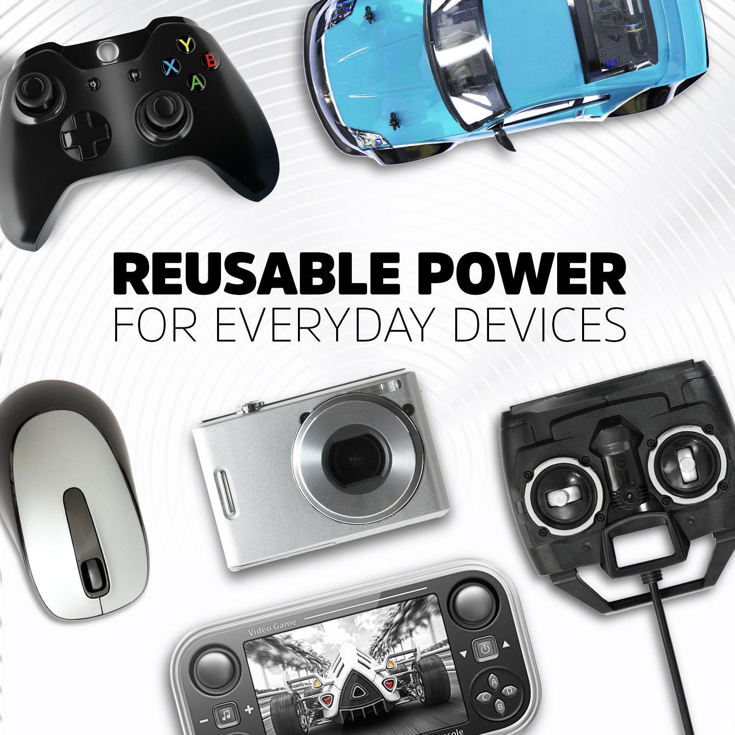 Keep your family fully powered every day with long-lasting Energizer Recharge Universal Rechargeable Batteries. These rechargeable batteries help you save money and create less waste over time, reducing environmental impact. Each Energizer Recharge Universal battery can be charged and used hundreds of times. Don’t feel like using your charged-up batteries right away? The charge lasts up to one year in storage. Simply pair up with any Energizer Recharge Charger to power up your everyday devices like toys, portable radios, and flashlights and keep the power going.