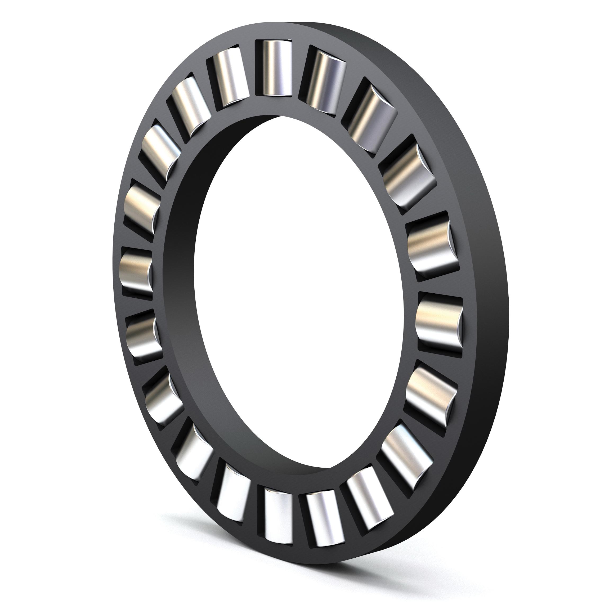 Cylindrical roller thrust bearings provide rolling bearing arrangements that accommodate high-dynamic axial loads. The simple geometry of the bearing components allows the use of many design arrangements. As an example, for less demanding applications, it is possible to combine metric series, thrust cylindrical roller and cage assemblies, including the metric series heavy thrust washers (LS, CPR) and even the metric series thin thrust washers (AS, CP). These two thrust washer types are more commonly used with thrust needle roller and cage assemblies. Thrust cylindrical roller and cage assemblies also can be used without bearing thrust washers if the adjacent machine components can be prepared to serve as suitable raceways. Cylindrical roller thrust bearings may be used where the load carrying capability of thrust needle roller and cage assemblies is insufficient. Also, the bearings can accommodate high-dynamic and static axial loads in one direction, but they are not suitable to transmit radial loads.