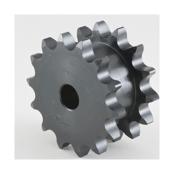 This type of sprocket is commonly used in applications where two or more items are powered by a common drive shaft. The space between the sprocket plates is wider than a multi-strand sprocket and allows two separate strands of chain to engage without contacting each other. With this type of sprocket, one strand of chain may exit in a different direction than the other. For example, one strand exiting towards the ceiling and the other running parallel to the floor.