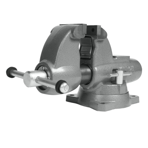 Proudly made in the USA, the combination pipe and bench round channel vise is designed to handle the most demanding clamping applications. Unlike most vises that have a fixed center nut, the combination pipe and bench round channel vise nut is anchored at the rear which provides straight line pull and even pressure resulting in greater durability. The round channel design also allows for a completely enclosed spindle and nut assembly keeping debris out and lubrication in for a lifetime of smooth operation. For ultimate versatility, the combination pipe and bench vise is equipped with main jaws, pipe jaws and a machined anvil work surface.