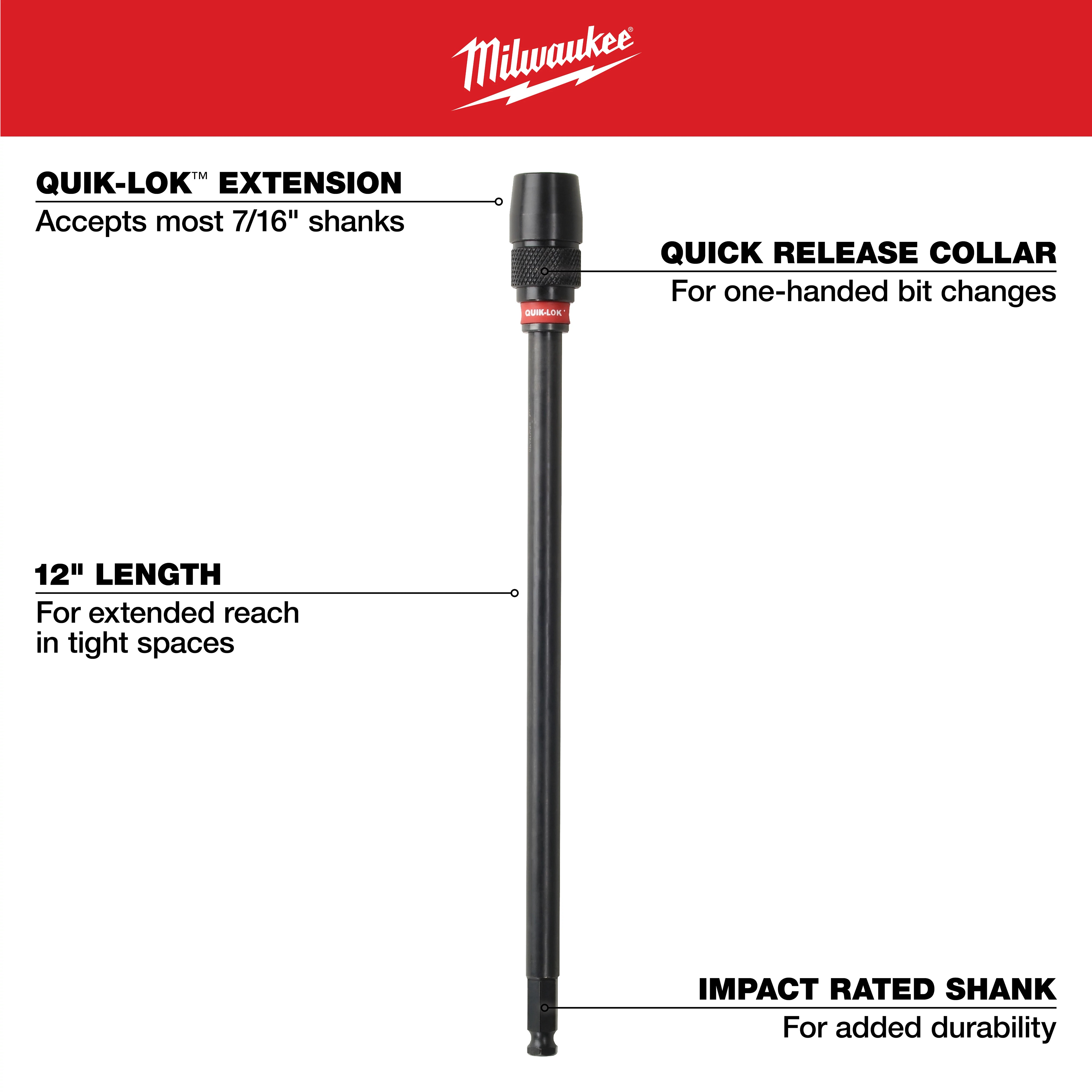 Milwaukee® QUIK-LOK™ 48-28-1040 Universal Hex Drill Extension, 7/16 in Shank, 12 in L
