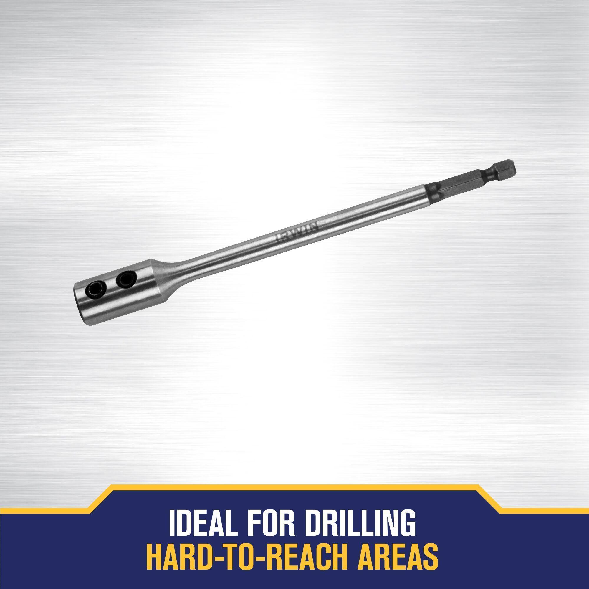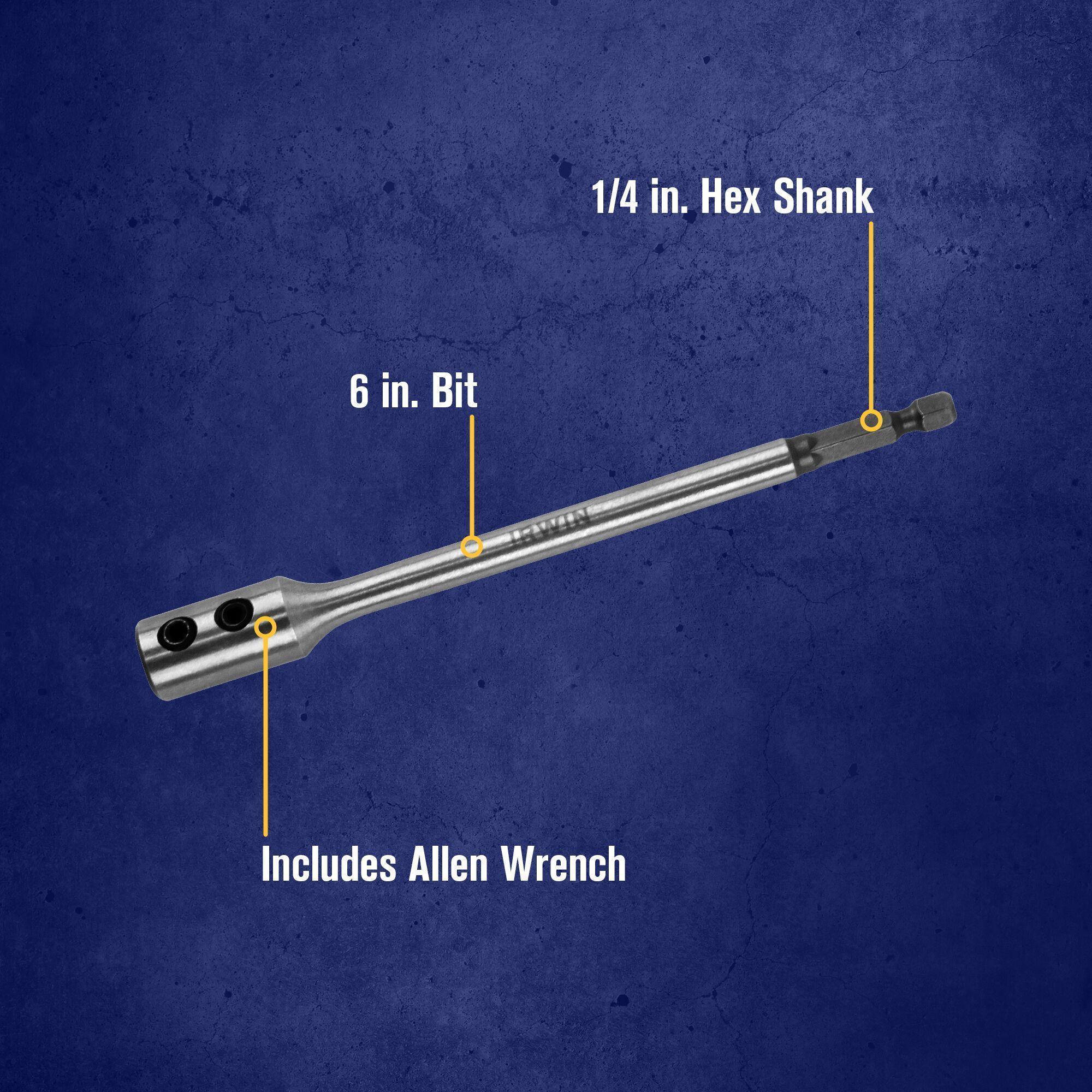 Drill in hard-to-reach areas with the 6 in. Wood Drilling Hex Key Extension Bit. Durable and portable this bit makes a great addition to any tradesman’s toolbox. Compatible with quick-change, hex, and round shanks. Includes hex key to secure extension during use.