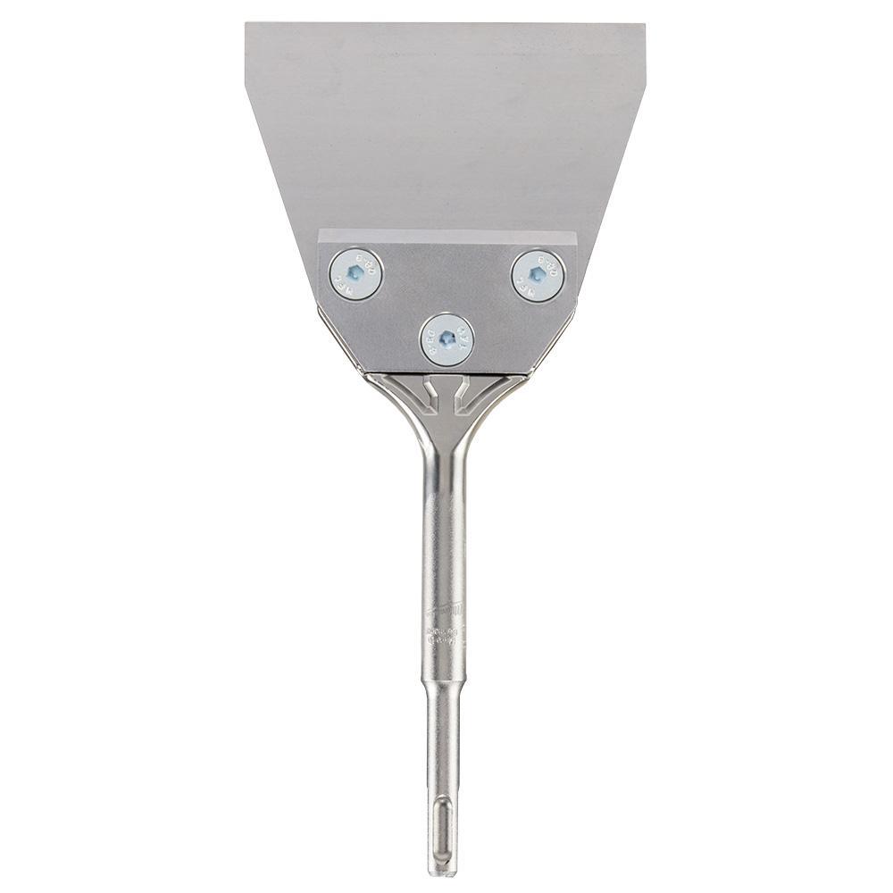 The MILWAUKEE® SDS Plus SLEDGE™ Chisels are Milwaukee's Longest Lasting, Most Productive family of chisels. The SDS Plus SLEDGE™ Floor Scraper is engineered with a 5” wide blade to remove 25% more material, maximizing removal of tile, linoleum, laminate, and adhesive. The sharpened, flexible 5" blade cuts under material faster and has a beveled plate edge to prevent material binding. The floor scraper is also equipped with countersunk bolts to reduce loosening. This MILWAUKEE® SDS Plus SLEDGE™ Floor Scraper is designed for use with SDS Plus rotary hammers.